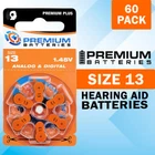 Fresh Date Codes Best Prices Fast Shipping Premium Batteries Size 13 ZA13 1.45V Zinc Air Hearing Aid Batteries Orange Tab (12 Pack) BUY NOW Twelve (12) quality batteries at the most competitive price only from Premium Batteries • 1.45V Premium Plus Zinc Air for reliability and performance • Total Batteries: 12 • 4-5 year shelf life with sealed protective tab • Classic dial wheel design for storage and protection • Packed and shipped in U.S.A. • Fresh Date Codes • Products are made in house at our factory and are guaranteed to be fresh. Size 13 Replaces: PR48, B013, B26PA, 13HP, DA13H, DA13N, AC13E, AC13N, AC13, 13, 13DS, ME8Z, ZA13, PR13H, P13, 13AE, L13ZA, 13A, ZA13, 13SA S13A, W13ZA, A13 Warning: Keep away from small children. If swallowed contact doctor immediately. Do not dispose of battery in fire or recharge cell. Not allowing cell to properly activate or battery contact with metallic objects/skin can cause premature failure due to short-circuit and obstruct current flow. Expired zinc air batteries should never be left in device after use. Please remove immediately and dispose of cell in a responsible manner. Storage: Do not store batteries in refrigerator units. Best temperature for storage is between 50-86 degrees Fahrenheit 10-30 degrees Celsius in dry place. Do not expose cells temperatures above 122 degrees Fahrenheit 50 degrees Celsius. ex: Closed car in direct sunlight. 1.45V of premium plus zinc air for reliability and performance 2-3 year shelf life with sealed protective tab Classic dial wheel design for storage and protection Quality batteries at the most competitive price only from Premium Batteries Packed and shipped in U.S.A. Premium Batteries Premium Plus Zinc Air Hearing Aid Batteries. Specially designed for operation in both analogue & digital devices. Designed to operate in high drain devices and provide high and constant voltage for optimal service life. Protective tabs provide protection for the zinc air batteries to prevent premature battery drain and provide long shelf life. Classic package with convenient rotary dispenser which safely stores premium batteries to prevent unexpected removal of protective battery tabs. Zinc air batteries are non rechargeable and require oxygen to function properly. Keep protective tab on battery until ready to use. Once tab is remove please allow up to 1 minute for oxygen to enter the cell and activate for use. SHOP BY BRAND SHOP BY SIZE Size 10 Size 13 Size 312 Size 675 Size 675HP & Cochlear SEE OUR OTHER ITEMS See our other items PAYMENT SHIPPING International Buyers - If you require delivery in a specific time frame and delivery information we strongly recommend you select "International Express Mail" or "EMS" during checkout as it includes tracking information for most locations worldwide. USPS First Class International Mail does NOT include tracking information. Please allow up to 18 business days for delivery after package has left the U.S. Some locations such as Brasil, Spain, Greece, Italy, and Russia can take up to 6-8 Weeks for delivery and sometimes longer due to customs delays. If you selected USPS First Class International Mail and already made your purchase, please do not ask for tracking information as Ebay automatically inserts customs declaration numbers for shipped orders and they are not trackable. Canada Post is an exception to this. Customs delays are not included in the estimated delivery time. Merchandise cannot be marked as gift . A Phone Number is required for customs declarations. Domestic Shipments Ships from U.S.A. – Delivery by USPS or UPS with delivery confirmation for most items. Some items may be subject to additional processing/shipping time through the postal service due to product shipping restrictions. U.S. locations outside the continental U.S. may be subject to additional shipping charges. Lithium cells are shipped on ground only. International Shipping Available Buyer is responsible for any and all local customs charges , duties, taxes, VAT, etc. We currently only accept PayPal verified shipping address. No freight forward shipping locations will be accepted. Other shipping options available. Payment - We accept payment by any of the following methods: PAYPAL, MC, VISA, AMEX, DISCOVER Please pay as soon as possible after winning an auction, as that will allow us to post your item to you sooner! All payments must be received within 7 days of auction end. Dispatch Times - We normally dispatch your order within 24 hours (Mon-Fri Only). Your goods are shipped from the continental United States. Auctions won Friday evening through Sunday are not processed until the next business day. Business hours are Monday-Friday 9am-5pm EST. Bulk - If you are planning on buying multiple items in bulk please message us first so we can discuss combined shipping cost for international shipping. We apply a different shipping cost calculation for orders over a certain weight. Please don't order the items then ask about shipping cost in the notes. Thank You TERMS & CONDITIONS Customer Service Hours Monday-Friday 9am-5pm EST. Hours - Auctions won Friday evening through Sunday are not processed until next business day. Business hours are Monday-Friday 9am-5pm EST. If you are not 100% satisfied with your purchase, you can return the product in its original packaging and get a full refund or exchange the product for another one, be it similar or not. T hese items are not returnable or refundable after opening! You can return a product for up to 30 days from the date you purchased it. Any product you return must be in the same condition you received it and in the original packaging. If we sent an item different from the item you ordered, or if the item is defective we will pay for the return shipping on all Domestic Orders. Otherwise, we expect the customer to cover any return shipping charges. RETURNS For buyers in any location, you have the option of using the carrier of your choice to return your ord