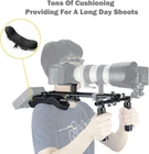 Niceyrig shoulder rig system 173 provides steady video shooting for people who keeps long time shooting to help release pressure Fits for industry standard 15mm rail rod system (rod centre to center distance is 60mm) Easy Set Up- Its shoulder pad integrated with ergonomics principle indeed makes your shoulder feel much comfortable, and the camera rig systems also includes a lifting easy plate equipped with various threaded holes ( 1/4" 3/8" M3 M4 ) in 9mm spacing, plus leather handgrips. Main body made of quality Aluminum Alloy, sturdy and durable Niceyrig 15mm Shoulder Pad Rig Stabilizer for Sony Canon Nikon DSLR Cameras, Film Movie Making System * Easy to set up,strong enough for 15mm shoulder rig system * Release pressure from your hand to your shoulder, and free your hand from the handle support * Dual to Single 90 Degree 15mm rod clamp --Designed to attach side handles to the front of shoulder mount * Leather handle single rod clamp can move together pushing away from your body or towards your body or move independently so you can have one grip further away from your body then the other grip. * Used for DSLR camera baseplate lifting system (For Arca Swiss) * With mini cheese plate, it suits for all DSLR cameras, you can add v-lock battery, magic arms, wireless microphone receiver etc. * A top 15mm railblock mounted on the shoulder pad to directly attach to DSLR rig 15mm rails. * The 16'' aluminum rods both ends M12 female thread.You can use a 15mm rod connector to extend the rod,with standard 15mm diameter,compatible with all 15mm rail system and other support system. * Main body made of quality Aluminum Alloy, durable and lightweight Package Includes: 1X Shoulder pad 2X 16'' Aluminum Alloy rods 1X 15mm railblock 2X Easy plate 1X 15mm rod clamp 2X 63mm rods 2X Handgrip 1X 15mm rod clamp 1X 12" Aluminum rod