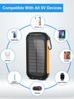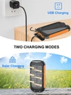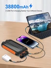 โ High-Capacity portable charger power bank: Solar Charger Power Bank Built-in high-quality lithium polymer battery, battery bank It has passed certifications like UL, CE, FCC, RoHS, and UN38.3. But in powerful safety system provides temperature protection, over-voltage protection, over-current protection, short-circuit protection, etc. It can stabilize the equipment and ensure its safety in use. โ Fast Charging & Widely Compatible Solar Charger: The Power Bank mobile power supply has a built-in USB C input/output and USB A&B output, which can charge 3 devices at the same time. solar powered charger are compatible with most USB devices, such as iPhones, iPads, and other Android phones. At the same time, it is also the best gift for family and friends during festivals, such as Halloween, Thanksgiving, New Year's Day, Christmas, Valentine's Day, Mother's Day, Father's Day, etc. โ Solar Phone Charger Power Bank for Outdoor Activities: The Portable Phone Charger has a built-in three modes LED flashlight (Steady-SOS-Strobe ), and lighting time can last up to 100+ hours when fully charged. Whether it is daily life, travel, hurricane prep, outdoor camping, cycling, fishing, hiking, kayaking, etc. This portable solar charger will all become part of your "traveling essentials bag". โ USB & Solar Charging Modes: The portable charger power bank is powered by a 5V/3A adapter or solar. Although the solar charging function is useful in emergencies, it is worth noting that due to the small size of the solar panel and the large capacity of the mobile power supply, the charging speed is affected by changes in sunlight intensity and panel conversion rate. Charging a battery pack using solar panels can take a long time.The primary way to charge the solar battery charger is via USB โ Outdoor Waterproof Portable Design: The solar charger has a protective cover attached to the outside of the charging/discharging port, so it has a waterproof and dustproof function. In addition, it comes with a carabiner clip that you can hang on your backpack, perfect for outdoor camping, hiking, traveling, cycling, fishing, beach, etc. What you will get: 1* 38800 mAh portable power bank, 1*USB Cable, 1*Carabiner, 1* Users Manual, 24-hour friendly customer service.