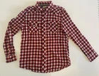 This preowned Roebuck & Co men's button-up shirt is a versatile addition to any wardrobe. Made from 100% cotton flannel, it is perfect for cooler seasons and has a red and white plaid pattern that gives it a western/outdoor theme. The shirt has a collared neckline and snap closure, with long sleeves that make it suitable for travel, casual wear, workwear, or business attire. The shirt is a size L, with a regular fit that measures 21.5 inches in the chest. It also features easy care, pockets, and is machine washable. Despite its timeless design, the shirt is not vintage, and it is not handmade. It was manufactured in Bangladesh and is sold as a single unit. Wear it with jeans or dress pants, and complete the look with your favorite accessories. **Measurements: Size of shirts on tag may not be accurate. Please take note of the measurements I list below as well as the pictures for accurate measurements before purchasing. Measurement: 21.5 inches Chest x 28.5 inches length x 26 Inches Sleeve (roughly) For example a size xl might measure out to be a size l so it is very important to go by the measurements provided in pictures and listing. If you are unsure about a size it is good to measure a shirt similar to the listing you already own that fits you well and compare it to the measurements in the listing to avoid having to return an item because it does not fit correctly. **Please make sure to view photos with measurements and for any flaws and again ask questions if unsure about the fit before purchasing. I will accept a return if item does not fit but BUYER will be responsible for paying the shipping cost to return item. An item that does not fit DOES NOT qualify for an "Item not described" return. If there is an issue with the item that is not disclosed in the listing like a missing button or a stain not shown in listing and or pictures then that would qualify for an "Item not described" return. Thank you for viewing my listing and if you have any questions or concerns please message me ;-)