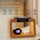 ⚡[5-in-1 Multi-Function Charging Station] This versatile wireless station samsnug combines a 3 IN 1 wireless Charger, Digital Alarm Clock, and Adjustable Bedside Lamp, catering to an array of devices like Samsung Galaxy, Watches and Headphones. 15W Fast Charging for Samsung Galaxy phone which support wireless charging and offers 5W Wireless Charging for Watches. Also, it supports 5W wireless charging for Samsnug Galaxy Buds. 🚫Note: Watch charging is exclusive to Samsnug Galaxy Watch. 💡[3 Different Mode Night Light] Samsnug high speed charging station with night light offers three color switching options and four different brightness modes. It features warm light, natural light, and cool light, providing 3 color light options with 4 brightness levels adjustable from 6000K to 3000K. Simply touch the button again to turn off the light! This bedside lamp is a helpful companion for nighttime visits, being gentle on the eyes, free from glare, and protective of your vision. ⏰[Digital Alarm Clock& Night Light] Our wireless charging station comes equipped with a digital display clock and alarm function. The brightness of the digital display clock can be adjusted with four modes to choose from, allowing you to tailor your perfect ambiance. Press and hold the switch to gradually increase or decrease the brightness according to your preference. 🍀[Decorates Your Home] Crafted from 100% organic bamboo, this galaxy wireless charging station fast is not just a powerful charging device but also a piece of decorative home art. Whether placed in your bedroom, living room, or study, its exquisite design will add a touch of elegance to your space. ✅[Protecting Your Devices] Designed for fast 15W wireless charging with comprehensive safety features. Wireless charging docking station samsung includes over-current, over-voltage, over-heating protection, and foreign object detection to prevent overcharging and protect your device battery. The top and bottom of the wireless samsug station feature high-quality rubber pads to prevent slipping or surface scratches. 💟[Case Friendly] Enjoy hassle-free charging without removing your phone case. Our samsug galaxy wireless station can transmit power directly through cases up to 0.2 inch (5mm) thick, saving you the inconvenience of removing ultra-thin protective covers. Please remember to remove credit cards and holders before charging. 🎁[Gift from the Heart] Our wireless phone charger station samsug is beautifully packaged, combining modern minimalism with profound meaning. It's the ideal choice for birthdays, celebrations, and Christmas. Universally appealing, it makes an impeccable gesture for women, men, fathers, mothers, spouses, sisters, and cherished friends. Experience the perfect blend of elegance and functionality with our samsung fast wireless station.