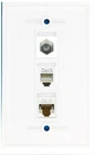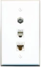 1 PORT Coax Cable TV CAT6 RJ45 Ethernet Phone Coupler Jack Wall Plate Flat Solid