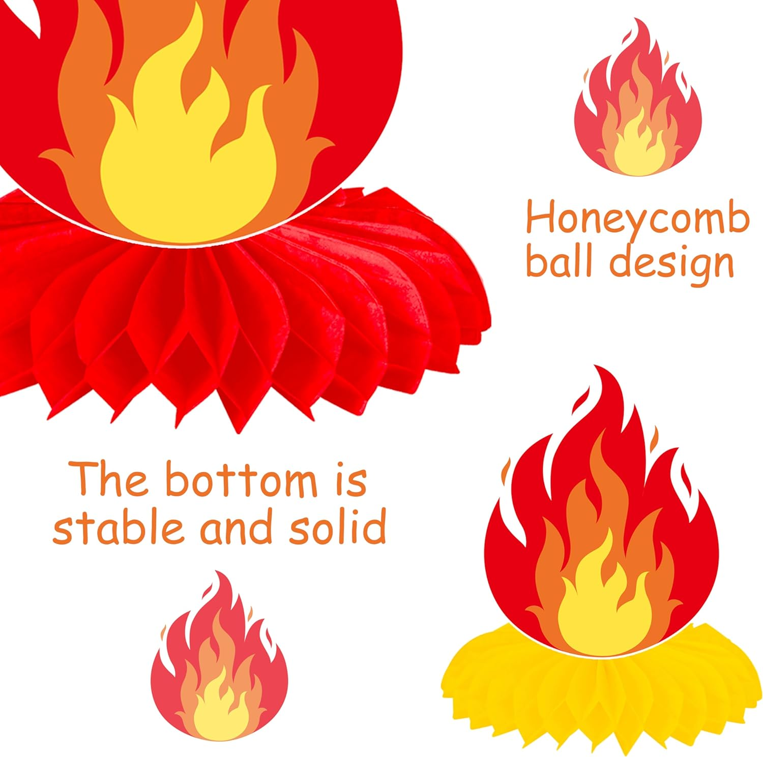Fast Shipping On All Items 30 Days Money Guarantee Customer Support Excellent Service 100% Satisfaction Satisfaction Guaranteed 10 PCS Fire Flame Theme Honeycomb Centerpieces Firefighter Birthday Party Specification Item model number HC-81 Unit Count 10.0 Count Color Red, Yellow Material Paper Item Weight 3.84 ounces Theme Fireman Occasion Birthday Package Dimensions 9.29 x 7.13 x 0.47 inches 7.13 inches x 9.29 inches x 0.47 inches. Weight: 3.84 oz Item Description Fire flame theme honeycomb centerpieces: Set of 10 fire-themed honeycomb centerpieces featuring vibrant red and yellow flame designs with matching decorative bases Fire birthday party decorations: Eye-catching flame motif centerpieces with layered honeycomb construction create a dramatic 3D effect for your party decor Flame theme centerpieces for table: Separate card and honeycomb base components allow for quick setup - simply unfold and attach the pieces together Firefighter birthday party decorations: Striking combination of red and yellow flames adds a warm, energetic atmosphere to your event space Fire truck theme party baby shower supplies: Perfect for firefighter parties, BBQ events, camping themes, or any celebration needing a touch of fiery flair About us We offer the best prices around on high quality products. Our E-store includes media such as books, movies, music and games while offering electronics, toys, sporting apparel, clothing, tools, general home, garden items and more. Shipping We are always working hard to ensure your package arrives as soon as possible. Please understand that some factors like weather, high postal traffic, and the performance of shipping companies are outside of our control. We offer free shipping to the lower 48 states and ship within 2-3 business days of payment, usually sooner. We do not accept P.O. Boxes. Please provide a physical address. For shipping outside of the continental USA, we only use eBay's Global Shipping Program.The item is shipped to KY and then sent to the rest of the world. International customers are responsible for all duties and taxes. Continue to check out to calculate costs for shipping the item to your country. Messages regarding eBay's Global Shipping Program MUST be directed at eBay EXCLUSIVELY. Returns We offer a 30-Day Return Policy on items in which you are not completely satisfied with. You have the option of a full-refund or an exchange of the item. No returns are available on items shipped outside of the USA Satisfaction We try over very best to make sure every customer is completely satisfied. If there's a problem, message us! We're happy to help. Payment Options Shop With Confidence