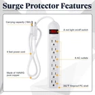 Features: You can give these electrical strips surge protectors to your friends, family members and colleagues, and they will be very happy to receive such practical and useful gifts. The 4 ft surge protector power strip can be mounted on walls, to help you save space of room, say goodbye to messy power cord on the ground. Specifications: Main color: white Power cord size: approx. 4 feet/ 1.2 meter in length Main material: copper, plastic Package includes: 10 x Surge protector power strips Warm notes: Please allow slight deviation due to manual measurement. Please allow slight color differences due to different monitors. Sufficient to Use and Replace: there are 10 packs of 6-outlet power strip surge protectors in the package, each power strip has 6 AC outlets, which can power multiple electronic devices at the same time, features a red light on/off switch with heavy duty 4 feet power cord Extension Cord and Wall Mount: the 6 outlet surge protector power strip with 4 ft long extension cord gives you the flexibility to connect to a remote outlet, it's easy to use and allows you to power multiple electronic devices and take advantage of hard to reach socket Safe and Reliable Material: the electrical strips surge protector is made of 14AWG pure copper, very thick, with better current carrying capacity (1500W) ; The braided power cord is not easy to deform, strong and durable, safer than other power cords, can protect electronic devices from surge, spikes, short circuits and overload effects Low Profile Flat Wall Plug: the right angle flat surge protector power strip adopts compact and slim design, which makes it fit perfectly in office or tight living space, making this device ideal for your home, office, workshop, TV room or garage Overload Protection: the 4 ft surge protector power strip is safe to use; The smart circuit with built in voltage sensing can detect the current power, when the rated power is exceeded, the switch will automatically turn off to ensure the safety of your equipment; 1382℉ fireproof PC shell, quality components can also prevent your equipment from overcurrent/ over charging/ overheating