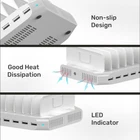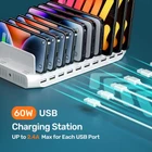 10 Port Phone Charging Station 60w USB Charging Station BC1.2 Apple USB 2.4A Charger Organizer: 10-port charging station allows you to charge multiple devices simultaneously, making it perfect for your home, school, or office. No more waiting for one device to charge before plugging in another. (No charging cable comes in the package, please use original authentic certified cables for optimum performance) Multiple USB Charging Station: Whether you have Apple devices such as iPhones and iPads, Samsung Galaxy phones, and tablets, and even watches and AirPods.the Alxum charging station has got you covered. Fast and Safe Charging: USB charging With BC1.2 Apple 2.4A charging specifications, single-port 2.4A output, and short-circuit protection, you can rest assured that your devices will charge quickly and safely. Plus, the intelligent hibernation feature helps conserve energy and keep your devices safe. Organize Your Space: offering arbitrary width adjustment to fit different sizes and shapes of devices. Say goodbye to messy cords and cluttered desks, making it perfect for your nightstand, desk, or family. Portable and Convenient: Whether you're traveling or just need to charge your devices on the go, this charging station comes with adapters for easy use wherever you are. Plus, it's certified to meet all safety standards, so you can trust it to keep your devices charged and ready to go. ------------------------------------------------------------------------------------------ Shipping Policy: Domestic lower 48 states shipping is free and expedited. Shipping is also free to the rest US states and US Protectorates including Puerto Rico, Alaska, Hawaii, APO/FPO, but delivery times are longer than usual. If you need your order by a specific date please contact us before you make the purchase for a delivery estimate. ------------------------------------------------------------------------------------------ Return Policy: Your satisfaction is guaranteed! If for any reason you are unhappy with your item, just return it within 30 days for a full refund. Please contact us prior to initiating a return so that we can issue you a refund authorization.
