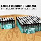 Product Description POWER FLASH AAA ULTRA ALKALINE BATTERIES. These AAA alkaline batteries have long-lasting power with low self-discharge. It is offered as a pack of 100 batteries. Ideal for devices with high power consumption including toys, cameras, flash units, cordless phones, remote controls, game consoles. The batteries comply with the currently valid EU directive and meet the highest requirements for safety and longevity. The shelf life of these batteries is up to 10 years meaning the batteries can remain in storage for up to 10 years and still correspond to the standards of IEC60086. These AAA batteries have greater efficiency and longer battery life and can be used in the temperature range from -20°C to + 50°C. POWER FLASH batteries have been successfully tested for electrical, thermal, geometric and mechanical requirements. Through rigorous testing, we can guarantee the highest product quality. Our quality experts regularly monitor compliance with our high standards and international standards. Safety Warning Do not recharge or throw on the fire. Box Contains POWER FLASH Ultra Alkaline LR03 100-Pack. IN THE BOX: 100-pack of 1.5 volt AAA alkaline batteries, suitable for home and office. Provide reliable performance for your devices with triple A batteries. DEVICE COMPATIBLE: Ideal for any device that uses AAA batteries, such as flameless candles, toys, various controllers, flashlights, clocks, etc. ADVANCED TECHNOLOGY: POWER FLASH High-Performance Batteries, contain no mercury or cadmium, leak-proof construction protects your favorite devices, easy to use and store, and shelf life up to 10 years for everyday or emergency use. ULTRA LONG-LASTING: POWER FLASH supply more power to your devices than other brands, solving your life's power shortage problem without worrying about your toys running out of power too fast. ENVIRONMENTAL CONSIDERATION: Perfect for daily usage and outdoor adventures, we take the environmental impact into account when manufacturing our premium AAA alkaline battery, so you can use them with confidence. These batteries keep ready when you need them.