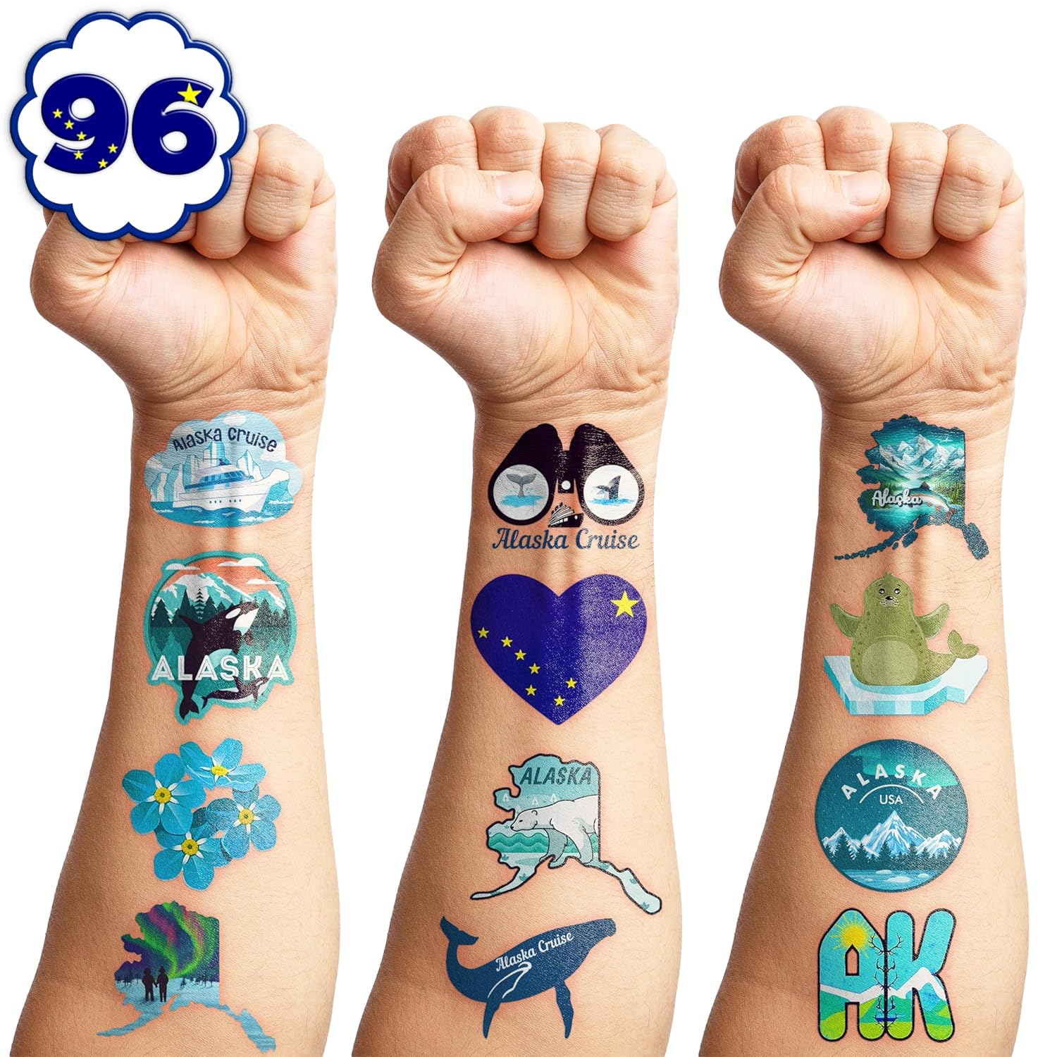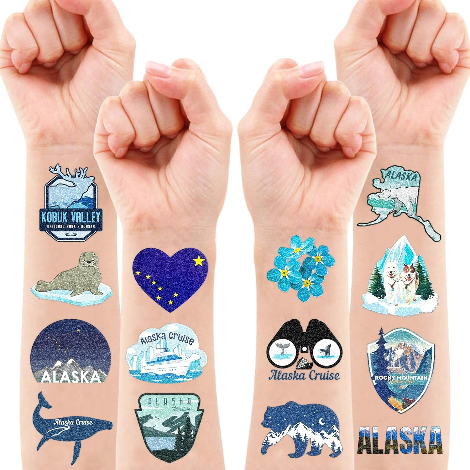 100 PCS Alaska Cruise Birthday Party Decorations Favors Temporary Tattoos Decor Adventure Await Alaska Flag Alaskan Cruise Car Ship Lion Seal Reindeer Stickers for Boy Girl Gift School Prizes Rewards 🏞️ALASKA CRUISE: Hi everyone! An amazing set of 10 sheets including 100 a size of 6.1 by 3.1 inches. These ALASKA tattoo pieces will be sent to you quickly, place your order to get these temporary tattoos. 🏔️ALASKA FLAG: These temporary tattoos of ALASKA will look amazing at your celebration! A ton of wonderful Alaskan cruise cars, ships, lion seals, reindeer, and more are available for selection. Now grab some accessories to give your event some flair! 🎉APPLICABLE OCCASIONS: These sheets are great ideas for gone ALASKA party decorations, ALASKA flag, adventure awaits party decorations, and more. ♻️SAFE AND HIGH QUALITY: We design temporary tattoos using high-quality, safe paper. Our tattoos are not only visually appealing but also crafted with the utmost care to ensure our clients' safety. 📌HOW TO APPLY: First, Cut out the pattern and peel off the protective film. Secondly, place the tattoo on the skin or objects like a water bottle, purse, laptop, phone case, etc. Next, wet the paper until it soaked. Then, light pressure tattoo on the paper for 10 seconds. Finally, remove the tattoo paper once it's done. Go ahead and enjoy your stunning new look! And You'll have a gorgeous, velvety tattoo that can be easily removed with baby oil, soap, or water. 💌THINGS TO NOTES: Do not apply around eyes, lips, or sensitive skin areas. Under no circumstances should anyone under the age of four use this without adult supervision. Our team is always here to help and ensure you have a positive shopping experience. Please do not hesitate to contact us for assistance. Product Description Eye-Catching Alaska-Inspired Tattoos: Celebrate the Majestic Beauty of the Last Frontier! Honor the wild and rugged landscapes of Alaska with stunning tattoos that capture the state's natural beauty. Perfect for adventurers and nature lovers, these designs can feature iconic symbols like snow-capped mountains, the Northern Lights, bears, wolves, or the Alaskan coastline. Whether you choose a detailed, realistic scene or a minimalist outline, Alaska tattoos represent the spirit of adventure, freedom, and the breathtaking wilderness. With their bold imagery and deep connection to the great outdoors, these tattoos are a lasting tribute to the untamed beauty of the Alaskan wilderness! Dimensions 3.46 inches x 6.14 inches x 2.95 inches. Weight: 2.08 oz Specifications Style Modern Color Multiple Water Resistance Level Water Resistant Country of Origin China Pattern Animal Print Package Dimensions 6.14 x 3.46 x 2.95 inches; 2.08 ounces Shipping: Shipped from the USA. Fast delivery within 2–3 days. Payment: PayPal, credit card, bank transfer. Returns: 30-day free return – we cover the shipping cost. Quality: Made in Europe/USA/China. No customs fees. VAT invoice on request. Feedback: You’ll automatically receive positive feedback after payment.