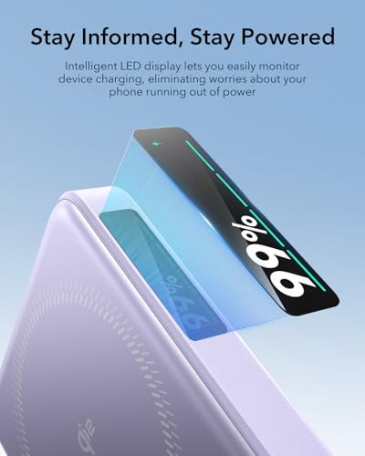 Qi2 Certified Fast Charging: officially Qi2-certified 15W MagSafe iPhone charging gives you safer, faster, and more reliable charge, powering your iPhone 15 Pro 2x faster than a 7.5W magsafe power bank Double Award-Winning Design and Built-in Smart Display: winner of both the IF and Red Dot Awards, this magsafe portable charger innovative kickstand design offers adjustable angles between 45° and 70° for perfect viewing, along with a built-in smart LED display to monitor the charging process and real-time battery status Heat Dissipation: The magsafe power bank built-in NTC sensor, AI algorithm, and graphene heat dissipation actively monitor charging to prevent overcharging and overheating, ensuring safe device protection and air travel approval Strong Magnetic Lock: 1,200 g of magnetic force keeps your magsafe battery pack securely in place during charging Charge 2 at Once: charge two devices simultaneously with Qi2 MagSafe wireless charging and USB-C wired charging; wireless charging is only compatible with iPhone 16/15/14/13/12 series; in the box: Qi2 magsafe portable charger, 2.0-ft (0.6 m) USB-C to USB-C cable, and manual Complete Customer Support: detailed setup videos and FAQs, comprehensive 24-month protection plan, lifetime support, and personalized help Note:Samsung and Android without wireless charging can only use 27W USB-C wired charging.Don't support MagSafe wireless charging Samsung and Android with non-magnetic case.Don't support Qi2 15W fast charging for Samsung and Android