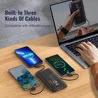 [6 in 1 Portable Charger]:Built-in three cables for different types of cell phone directly,no need take charging cable,built-in AC wall plug fast charge,so when you outside ,only take this portable charger is OK ,no need other cables and adapter. [Upgraded Portable Power Bank]The slim and handy 10000mAh high capacity battery with 6 in 1 compact design is easy to carry, have USB C 20W extremely convenient for travel and daily use in charging electronic devices mobile phones, cameras and tablets. [Slim and Compact size Portable Phone Charger with Digital battery Display]:Q Portable Phone Charger dimension is 5.9*2.8*0.55inch, which make it easier to carry, will not give you too much trouble when carrying out. Stay informed about your power bank's battery status with the easy-to-read digital display. This intuitive feature lets you know exactly how much power is remaining, so you can plan your charging needs accordingly [Two Ways To Charge The External Battery Pack]the first way use the built –in AC wall plug for recharge the battery pack ,the second way use the 5V 3A Usb C charging cable to charge the power bank,suggest the fist way more convenience. UL2056 certificate. Intelligent power management IC provides power short circuit protection, over current protection, over voltage and over heat protection to ensure safe charging [Travel-Friendly Design with Portable Carrying Case Power Bank]: This power bank comes with a portable carrying case. Its compact size and lightweight construction make it the perfect companion for your travels, ensuring you have reliable power wherever you go. Additionally, using the built-in AC plug, you can fully recharge the power bank easy, providing you with a quick turnaround time and minimal downtime between charges. [What’s You Get]1x 10000mAh Portable Charger,1x carrying bag(easy to take anywhere),1x User Manual, any questions or problem will respond in 12 hours.
