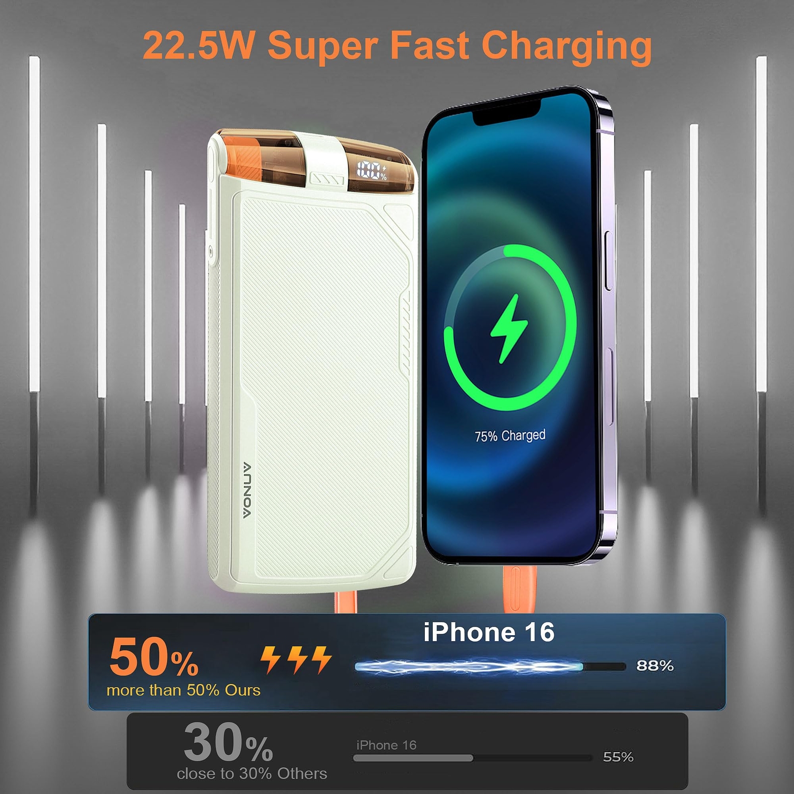 Portable Charger with Built in Cables: Allowing you to charge up to two devices simultaneously. No need to carry extra cables or adapters, making it a hassle-free solution for on-the-go charging. Supports 20W PD and 22.5W USB-C output for fast, efficient charging of multiple devices. High Capacity Power: With 10000mAh of power, this portable charger provides over two full charges for iPhone 16, iPhone 15, or Galaxy S24, easily meeting your daily power needs. Whether for everyday use, travel, or business trips, this high-capacity charger will be your essential and reliable companion. Universal Compatibility with Popular Devices: This portable phone charger is designed with multiple built-in ports and cables, making it widely compatible with popular smartphones and tablets. Supports iPhone 13, 12, 11, 8, 7 series, XR, XS Max, as well as Galaxy S24, S23, S22, A52, A32, Z Fold, Z Flip series, Google Pixel series, and other Android phones and tablets. Reliable Security: This portable fast wireless power bank is equipped with advanced cryogenic IC ice cores and multi-system protection. It intelligently monitors voltage and current, actively preventing potential risks like overcharging, over-discharging, short circuits, and overheating, ensuring safe and worry-free use. What You Get: 10000mAh Battery Charger x 1, USB-C Charing Cable x 1 and User Guide x 1