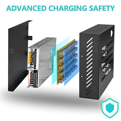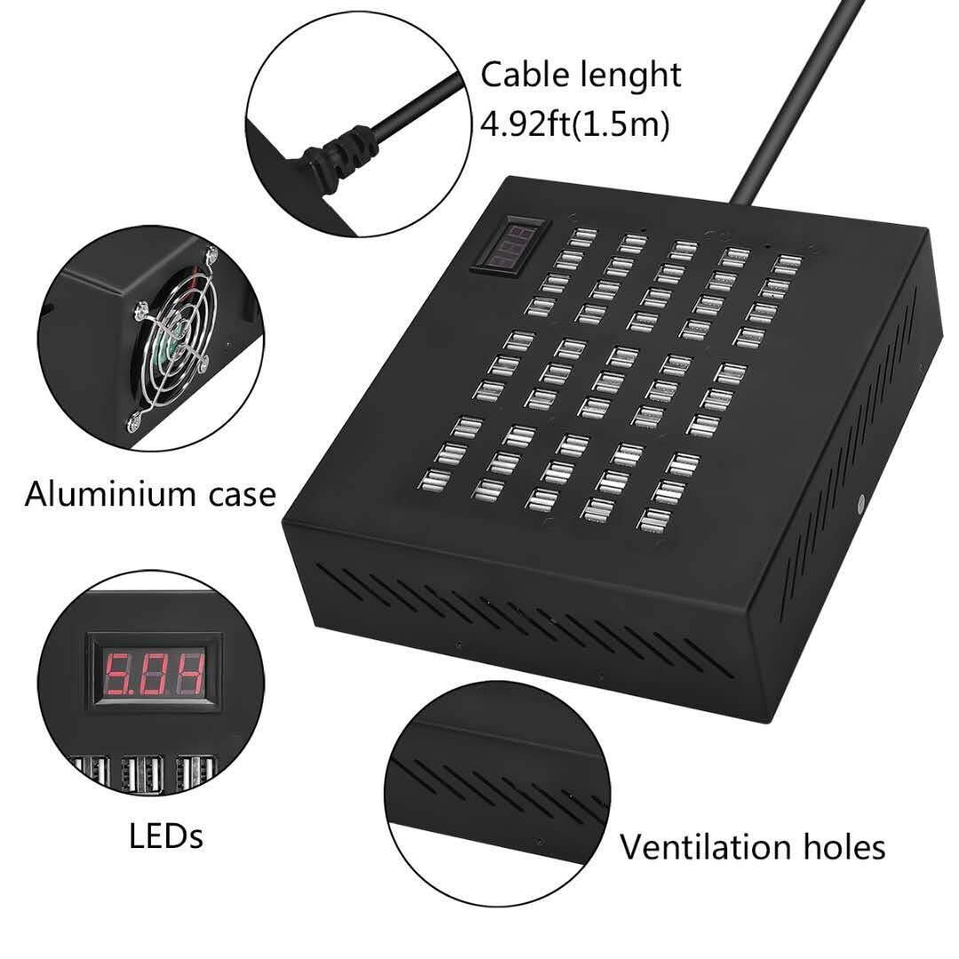 [TECHNOLOGY UPGRADE&ADVANCED MATERIALS]--2024 NEW STYLE 100 PORTS USB charging station, adopt Latest generation USB controller technology, USB charger built-in smart IC tech that can identify your devices and delivers full speed charging.Our charging power station uses PC+ABS fire retardant material to ensure our safety. [SMART CHARGING IDENTIFICATION &FAST CHARGING]--This multi-port charging station automatically recognizes the current signal and performs current output according to the device limitation, which is intelligent and safe. Just plug and play, no need any driver or software. Latest generation USB HUB controller, Maximum charge output of 3.5A per USB port. Single port supports fast charging to save you time and effort. [INDUSTRIAL-STRENGTH &INDEPENDENT WORK]--Impressive 500w Power Output, Massive power to charge 100 tablets or phones simultaneously at full speed. the multi ports charging station ,each interface has independent chip, effectively prevent the mutual interference between each port, ensure the safety of charging equipment. [100% SAFE CHARGING]-- Intelligent chip was built in to protect from over voltage, over current and overload. Reasonable cooling holes which can effective heat dissipation to prevent from over-temperature. Overcharge protection, when these devices fully charged, automatically converts to a small current trickle charge, the battery saturation rate of 99%. [WHAT YOU GET &WIDE RANGE OF APPLICATIONS]--List: a premium daimler 100-Ports USB charging machine, one Power cable ,our worry-free 3-YEARS warranty and friendly customer service. The power charge station suitable for a variety of devices, compatible with 99% of smart devices, such as mobile phones, tablets, desk lamps, fans, DV, PSP. and suitable for all kinds of occasions, such as hotels, school dormitories, stations, etc.