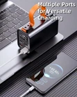 High-Capacity: Featuring a massive 50000mAh battery capacity, this power bank can charge most smartphones or phone over 10 times and tablets up to 5 times. Portable Power Bank is a powerhouse designed for those who need reliable and fast charging on the go. Two Way PD 100W Fast Charging: Equipped with 4 dual inputs and outputs, including USB-C Power Delivery, this portable charger rapidly recharges devices at maximum speed. Versatile Compatibility: Compatible with a wide range of devices like smartphones, tablets, laptops, and more, making it perfect for travel and outdoor adventures. The USB-C1 and C2 ports support 160W total output, allowing you to charge multiple devices at once without any compromise in speed. This makes it ideal for smartphones, tablets, laptops, and more. Comprehensive safety protection: Overcharge, over-discharge, over-current, temperature, and short-circuit protection. Constructed with premium materials and boasting a sleek, compact form factor, this power bank is built to withstand daily wear and tear. Intelligent Charging: The LED display shows real-time battery levels, ensuring efficient power management and preventing overcharging or overcurrent issues. The power bank comes with adjustable LED lighting that offers three modes: soft light, bright light, and strong light, making it an excellent choice for outdoor adventures or emergency situations.