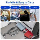 4 in 2 6A USB C Multi Charging Cable with 2 in 1 USB A to USB C Port and 4 Charging ports: Watch Wireless Charger/Lightning/Type C/Micro USB. Offers 4 Different Ports to replace messy Cable tangles. A 2 in 1 input is compatible with two types of Chargers. Please note: *Only Type C output supports 100W charging and 480Mbps data transfer, other outputs only support charging. The unprecedented 6A 100W PD technology takes charging speeds to the next level - incredibly fast charging of your iPhone 15 up to 65% in 30 minutes or your MacBook Pro up to 100% in just 1.9 Hours. Note: Actual charging speed depends on your Device and Wall Charger. Universal and Multiple Charging- iWatch Charging port compatible with all Apple Watch Series Ultra/8/SE2/7/6/SE/5/4/3/2/1; Lightning/iOS connector compatible with iPhone series; The USB C port supports iPad, iPhone15 series, Macbook Pro, Laptops, Galaxy and other USB-C Smartphones. The Micro USB port is compatible with Samsung Galaxy S7/S6/S4 and most Android Phones as well as Kindle, Bluetooth headsets, PS4 controllers and more.A Perfect Quick Charging Cable for Multiple Devices. 10Ft USB Multi Charging Cable supports charging Multiple Devices at the same time. The Charging Cable multiple Ends contains an authorized Chip to ensure 100% compatibility with iPhone. High-purity copper wire and thickened copper Cores, triple shielding ensure long-lasting fast Charging performance. The exclusive smart Chip with 100w Fast Fharging by automatically adjusting the power. What You'll Get-1 x 3M/10ft 100w 4 in 2 Travel Charger for iPhone and Apple Watch. The 10 Feet Cable accommodating different daily scenarios. Can replace all other Charging Cables at Home, Office, Car, Traveling, etc., one for all. Simple and convenient. It's easily storable in your Handbag, Laptop Bag. And you can give it to your friends and family as Christmas and Birthday Gifts.