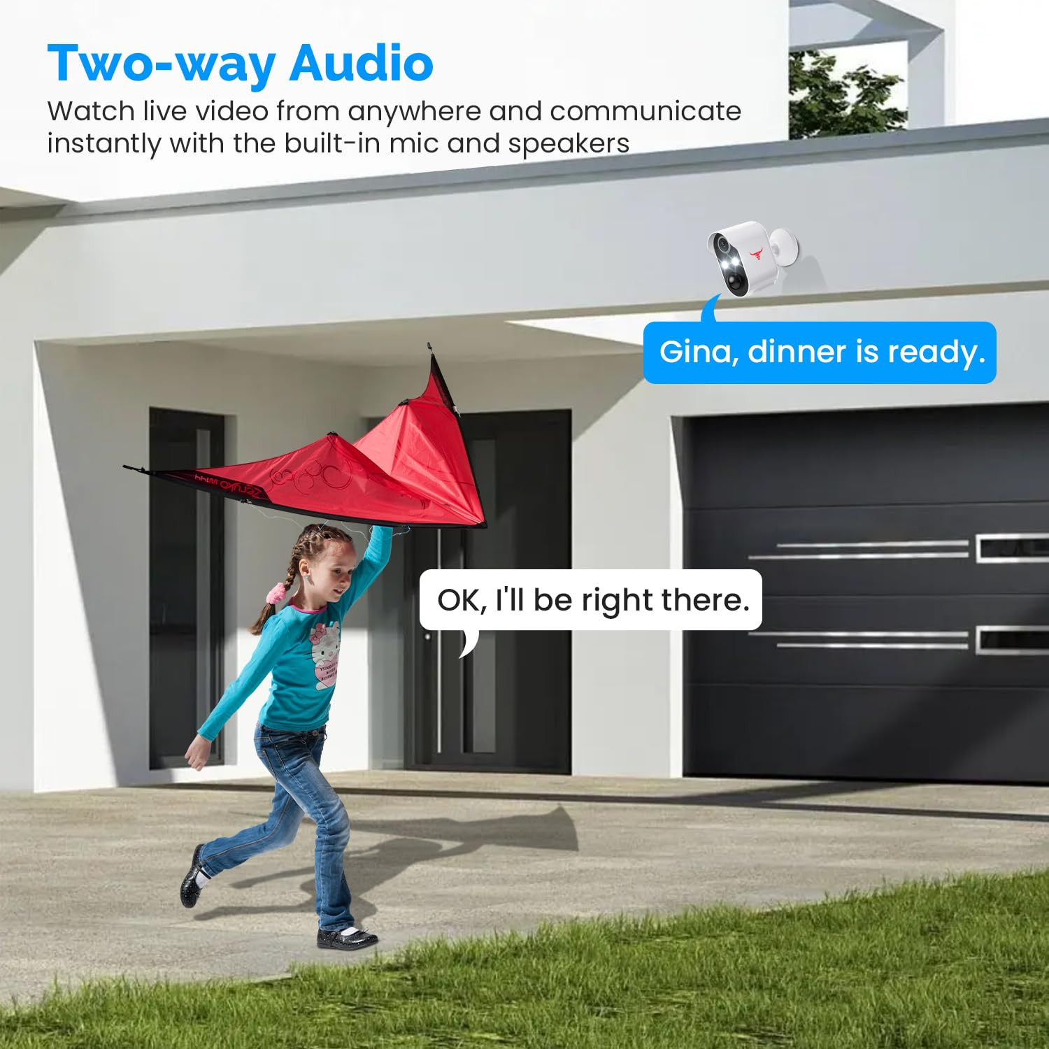 PIR Sensor for Human-Centric Motion Detection: With an integrated PIR motion sensor, this camera alerts you to movement, honing in on human presence to lessen false alarms from animals or passing cars. Always-On Full HD Video Capture: Offers the clarity of 1080p Full HD, backed by color night vision, for perpetual property surveillance accessible from anywhere. Interactive Audio for Remote Conversations: Facilitates live audio communications with family or visitors, with the capability to grant camera access for a united security strategy. Wide-Ranging HD Surveillance: Capture a comprehensive surveillance area with 1080p HD resolution, a broad 140° viewing angle, and up to 33 feet of night vision range, ensuring extensive and vivid coverage around the clock. Encrypted Cloud Storage: Utilize AES 128-bit encrypted cloud storage (purchase required) to protect your video recordings, enabling secure storage and effortless sharing.