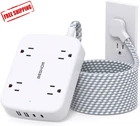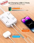 【Thin Flat Plug & 10Ft Extension Cord】With only 0.35 inch ultra thin plug and 45° right angle design, the flat plug power strip is much thinner than traditional plugs, which can close to the wall easily, and hide in the back of furniture, bed or refrigerator; 10ft extension cord is made of pure copper, which has better current carrying capacity (15A). The braided power cord is not easy to deform, is durable, and more safer. 【2.4 IN Wide Space】This power strip with 4AC widely outlets and 4 USB charging ports (Total 5V/3.1A) can power up to 8 devices simultaneously. 2.4 inches widely spaced in between outlets, larger than the standard sockets, fit big adapters without blocking each other. 【2 x USB C Charging Station】Added extra 2 USB C ports for your devices, the power strip with USB C port can charge up to 5V/3A. USB-A ports can charge up to 5V/2.4A Max. The 10Ft extension cord with multiple outlets can be stable on your desktop, nightstand, or wall mount, can save more space, suitable for the home, office, and college dorm room essentials. 【Surge Protection & Overload Protection】900 Joules surge protector with overload protection protects your electrical appliances from lighting, surges, or spikes. It will automatically cut power to protect connected devices when a voltage surge is overwhelming. 【Multi Safety Protection】RoHS, ETL Certificates. This flat wall plug has overload protection, short-circuit protection, over current protection, over-voltage protection, and overheating protection. Environmental protection and fire-resistance PC shell with flame retardant at 1382℉ make it more durable and longer lifetime. Product Description 8-IN-1 Desktop Power Strip with USB Ports BESHON USB Smart Power Strip with 4 wide outlets & 4 smart USB charging ports allows you to make reasonable use of the socket. It makes up little space on your desk or floor and makes your desktop organized, and suitable for home and office. 2.4 IN Wide Spaced Outlet 2.4 inches widely spaced in between outlets, larger than other 1.5in standard socket, perfect fit for big adapters without blocking each other. 10 Ft Surge Protection Power Strip Extension Cord with 4 Widely Outlets and 4 USB Charging Ports The braided design makes it tangle-free and more flexible, elegant, durable and hard-wearing. Wall Mountable Power Strip Surge Protection & Overload Protection It has 2 screw holes on the back so you can mount it wherever you needed 900 Joules surge protector with overload protection protects your electrical appliances from lighting, surges or spikes. Dual Fast Charging USB-C Ports 8-IN-1 USB C Travel Power strip Upgraded BESHON Power Strip added more USB-C ports to meet more charging demand. USB-C port can up to 15W/5V/3A max which is up to 30% faster than other chargers. Specification Rating 125V 60HZ USB A OUTPUT 5V/2.4A MAX USB OUTPUT DC 5V 3.1A TOTAL USB C OUTPUT DC 5V 3A MAX Maximum Power 1875W MAX Length of Cable 10FT