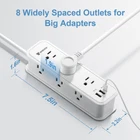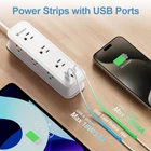 POWER STRIPS 9 IN 1 Function Outlet Extender: power strip with built-in 540 Joules surge protector has 6 widely spaced grounded 3-prong outlets and 3 USB ports, providing power for all devices that power everything on your desk from a single compact power bar. Save your space and make your desktop organized. Perfect for TV, phone, tablet, PC, laptop,printers, gaming computers, lamps, cameras, hair dryers, and other devices simultaneously Fast Charge with USB A & USB C: With Power Delivery 3.0 & Qualcomm 3.0 smart IC charging technology, each USB A port features QC18W max, USB C charging port features PD20W max, guaranteeing super-fast charging for your iPads, iPhone, and tablets at high speed when using one port.USB ports total 3A/15w. No need to find adapters or plugs for your USB devices 2 Side Design & Widely Space Outlets: The 2-side design with 6 1.9 inches wide space AC outlets of this USB power strip prevents bulkier plugs from blocking other outlets, as the outlets are spaced enough. The compact power strip helps organize your cords and accommodate your numerous adapters, suitable for the home, office, and college dorm room Multi Safety Protection: This power strip has over-load protection, short-circuit protection, and over-voltage protection. The surge protector with overload protection protects your electrical appliances from lighting, surges, or spikes. The minimum energy-absorbing capacity of 540 Joules. It will automatically cut power to protect connected devices when the voltage surge is overwhelming 10FT Heavy Duty Extension Cord - 10ft long extension cord(1875W/15A) gets a longer reach distance, whether as an indoor power strip or college dorm room essentials, it’s easy to plug your PC, monitor, printer, air purifier, desk lamp, gaming accessories, etc