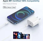 Safety Certification: This 20W PD Charger Block has passed UL safety standards and has a built-in safety chip, which can further protect your device from overheating/overloading/short-circuit hazards. During fast charging, perfect protection measures can ensure the safety of you and the device. iPhone Fast Charger Cable: Use the USB-C PD Charger to maximize the charging efficiency of this cable. It only takes 30 minutes to charge the iPhone to 50%. The charging speed is 3 times that of the iPhone Original Fast Charger Cable Apple MFi Certified: iPhone Original Fast Charger Cable The main body of the cable is composed of high-quality core wires and Apple MFi certified chips. The newly upgraded C94 chip can ensure the fastest and safest speed to transfer and charge the device. Super Compatibility: No Need to Purchase 2 products separately. can quickly charge the device.for example Apple iPhone 14 Pro Max/14 Pro/14 Max/14/13 Pro Max/13 Pro/13 Mini/13/12 Pro Max/12 Pro/12 Mini/12/11Pro Max/11 Pro/11/iPad Pro 365-Day Free Return and Exchange Service: All Cables you purchase enjoy 365-day free return service and 24/7 customer service. If you encounter problems during use, please find us through Amazon in time! After purchase, you will get: 20W PD fast charging wall charger Brick* 2Pack+ iPhone Fast Charger Cable 3M/10ft*2Pack Product Description Apple MFi 6ft iPhone Fast Charger Cable.(USB C to Lightning Cable) UL Certified 20W PD Fast Charger Q1: How to improve the Charging efficiency of this Cable? A1: Use a 20W USB C Charger to improve the Charging efficiency of the Cable. Q2:How long does it take charge my iphone 12 from 0% to 50% A2Using the PD20W charger can maximize the efficiency of the cable, It only takes 30 Min to charge an iPhone 12 charging to 50%. Remind You This cable is only suitable for devices with Fast Charger Cable interface. Use the USB C PD Fast charger to maximize the charging efficiency of the cable. Compatible with fast charging devices iPhone 14 Pro Max / 14 Pro / 14 / 14 Max iPhone 13 Pro Max / 13 Pro / 13 / 13 Mini iPhone 12 Pro Max / 12 Pro / 12 / 12 Mini iPhone 11 / 11 Pro Max / 11 Pro iPhone XR / XS / XSMax / X iPhone 8Plue / 8 / iPad Air Apple MFi Certified iPhone Fast Charger Cable.(USB C to Fast Charging Cable) Apple MFi Certified Chip Support is perfectly compatible with iTunes, iPhone and iPad, and the error message "The device may not support this accessory" will not appear. High-quality materials High-quality TPE&PVC Materials Can Effectively improve The Practicability and Wear Resistance of The Product. Will not Appear (Break, Short Circuit, Rust) The reversible one-piece connector will drive the other parts of the cable to bend together when you bend the cable head, increasing their flexibility.Effectively Avoid entanglement of Cables.This cable can also accept 12,000+ insertions and removals The Compact Connector Can Keep the Device Connected When Shaking. The Housing of the charger is made of high-quality ABS material. ABS material is a common high temperature resistant material, it has very good insulation, scratch resistance and drop resistance. Fast Charging Safely and Effectively Charging with a UL-certified 20W PD charger can maximize the charging efficiency of USB C to Fast Charging Cable It only takes 30 minutes to charge iPhone 12 to 50% You Will Receive iPhone Original Cable (USB C to Fast Charging Cord 2M) and USB C PD 20W Fast Wall Charger Block