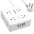 10Ft Surge Protector Power Strip - Flat Plug Extension Cord with 8 Widely Outlets and 4 USB Ports(1 USB C), 3 Side Outlet Extender for Home Office Dorm Room Essentials, White,ETL Listed Specifications: Input Voltage: 100-240VAC; 60HZ Max.Current: 10A Max.Power Rating: 1250W Surge Protector Rating: 900 Joules; USB Port Output: DC 5V, Total 4.2A Cord Length: 10 Ft; Package list: 1 x Power Strip with usb Port 1 x Instruction manual 1 x Paper Box Notice: Do not exceed the total rating or it may cause damage to the unit and fire hazards. MORE BENEFITS 8 Outlets Power Strip with 4 USB Ports: The 3-side 10Ft Extension Cords power strip with 8AC widely outlets and 4 USB charging ports total 4.2A, each USB A port features 5V/2.4A Max output. USB C charging port features 5V/3A MAX. can power up to 12 devices simultaneously.Wide range voltage design, can be used on 120v to 240v circuit. Surge Protector Power Strip with 3 Side Design & Wide Space: 3-side design that makes it easier to make the plugs not covering any outlet, and the 8 AC outlets with 1.78 inches long space in between, larger than standard 1.5-inch socket. Larger spacing makes it easier to use for all kinds of equipment.The compact design saves more space, suitable for the home, office, and college dorm room. 10 Ft extension cord with Flat Plug and Cable Ties: 10 Feet Right Angled Flat Plug power cord makes it more flexible,Reusable Fastening Cable Ties Can tie up the unused cord and make it better organized. The two mounting holes on back allows this power strip to be securely installed in various applications. Multi Safety Protection: RoHS, FCC and ETL Certificates. This power strip has overload protection, short-circuit protection, overheating protection. The surge protector with overload protection protects your electrical appliances from surges or spikes. The minimum energy-absorbing capacity of 900 Joules. It will automatically cut power to protect connected devices when voltage surge is overwhelming. Our After Sale Service: ETL Certificates. Our friendly and reliable customer service will respond to you within 24 hours. You can purchase with confidence, with our 30-day return and 12-month replacement.