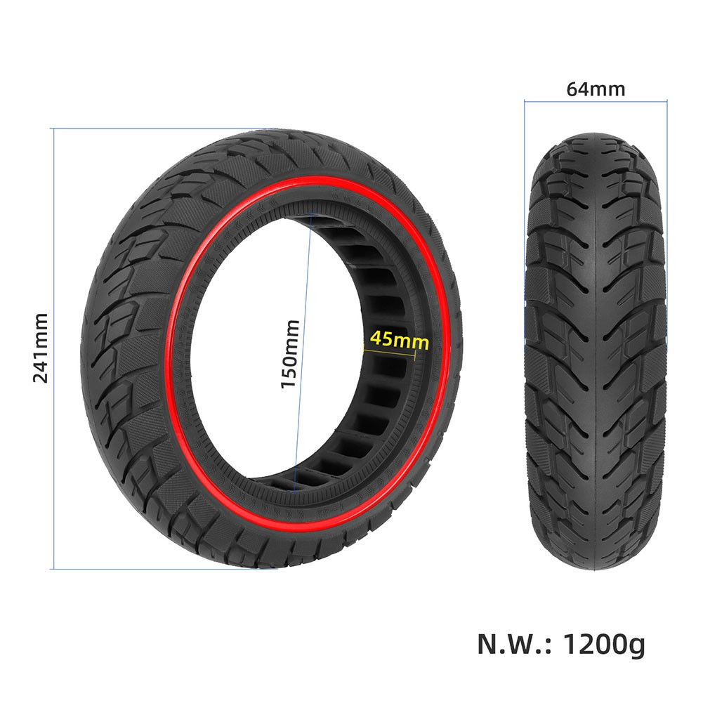 Beschreibung Features: * Material : This 10-inch tubeless tire is crafted from premium rubber, it withstands the rigors of daily use while maintaining its shape and integrity over time. *Compatibility: Designed specifically for NINEBOT Max G30 electric scooter, this tire fits models G30, G30E, and G30LP, making it a perfect replacement option for your scooter. *Optimal Performance: With a size of 60/70-6.5 (10x2.50-6.5), this tire offers excellent traction and stability, enhancing your riding experience on various terrains. *Lightweight Design: Weighing approximately 1200g, this tire provides a balance of strength and lightweight performance, contributing to improved scooter handling and maneuverability. *Easy Installation: The tubeless design simplifies the installation process, allowing you to quickly replace your tire without the need for additional tools or complicated procedures. Specifications: *Product Name:10 inch 60/70-6.5 Solid Tyre *Material:Rubber *Size:241x64mm *Color:Red line/Black *Weight: 1200g Package Content: 1 x Solid Tire Note: 1. The real color of the item may be slightly different from the pictures shown on website caused by many factors such as brightness of your monitor and light brightness. 2. Please allow slight manual measurement deviation for the data. POLICES Shipping Payment WARRANTY We only ship to confirmed ebay Order addresses. Please comfirm that your Order address is in line with your shipping address. Please kindly note that the c ombined shipping is not provided because the shipping fee is calculated by weight. Also, the each additional item means exactly the the same color and size. It takes about 7 -15 working days to US; about 10-30 working days to other countries. Transit time may be a little delayed because of the bad weather and customs inspection . If you do not receive your item within 30 working days since payment finished, please contact us immediately for further assistance. Payment must be completed within 5 days. If you have any problems about payment, please contact us via ebay message. We strive for 100% customer satisfaction! Positive Feedback is very important to us. If you have any questions, p lease feel free to contact us via "Ask seller a question" . We will reply your email within 24 working hours.