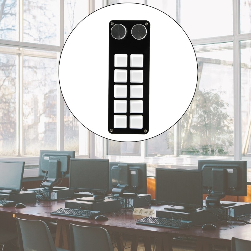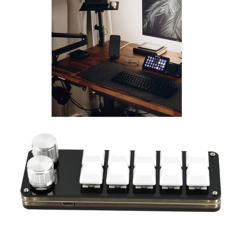 Features: 5 buttons and knobs: The product includes 5 buttons and knob, allowing for more operational choices, adapting to various application scenarios, and meeting the different needs of users. Memory Function : The portable mini keyboard has onboards memory function. After being set up on system, your settings are stored on the keyboard and can be used on system that support the USB Customizable function: This product has a customized button function, providing a more convenient and efficient operating experience. Compact design: The product adopts a compact design, suitable for placing on the desktop or using alongside other keyboards, saving space and providing ergonomic grip experience. No Conflicts: There is no need resets the device when replacing it. No driver required, no conflicts between computer and multiple keyboards, easy to carry. Specifications: Item: Mini Keyboard Lighting:LED Number of Keys: 10-Key 2 Knob Material: ABS Cable: Usb Cable Size: approx 15.5cm/6.1in Color: As Pictures Package Includes: Set Mini Keyboard note: Due to the problems of lighting effects and shooting angles, there will tolerances in the product, please understand. Please allow 0-2mm error due to manual measurment.