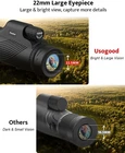 Product Description About this item 【10x42 High Definition and Comfortable Viewing】This monoculars for adults with a 42mm objective lens provide 10x magnification, which ensures that you can easily magnify the object with a stable view when observing handheld. With a large field of view of 360ft/1000yards, you can clearly see the mountains 1200 yards away. 【22.5 mm Extra Large Eyepiece, More Detail, Clearer and Brighter】Equipped with an oversized 22.5 mm eyepiece, this handheld monocular offers you a comfortable viewing experience. Including the BAK4 prism, all the lenses are fully multi-layer coated to reduce light loss by 99.99%, providing you with a brighter picture. 【Extremely Lightweight to Carrying Out, Multiple Carrying Options】This monocular comes with a hand strap and double lens covers, all that weighs less than 9 oz, which is light as your smartphone! Also comes with a soft case with a neck strap, so you can easily take it outside. Perfect for bird watching, deer watching, sporting events, etc. 【Compact, Handheld, One-finger Precision Focus】Different from other 80x100 monoculars, this compact monocular measures 5.8'' x 2.5'' x 2.1''. You only need one hand to hold it securely, and never feel hand soreness. Designed with the double focus ring, you can easily get a sharp view by adjusting either of them. 【See From 3 Yards to Infinity With Clarity】The close focus distance of this small monocular is less than 3 yards. It not only helps you observe the flowers in your yard or the birds in the trees, but also easily brings the landscape thousands of miles away to your eyes, such as a volcano ready to erupt. Also comes with 30-day hassle-free money back guarantee and LIFETIME WARRANTY. Usogood 10X42 High Definition Monocular Telescope Usogood is passionate about providing quality optical products to those who love hiking, exploring and outdoor activities. After the successful launch of binoculars around the world, we started developing the monoculars for bird watching. We have been looking for a high-quality monocular, after a long selection, testing, optimization, finally developed this exciting product! Due to the clear image, small size and lightweight, Usogood monocular is suitable for kids, adults, seniors and other age groups. On the basis of providing ultra-long-distance observation, it can also give a really clear close up view (9.8 ft), which is perfect for bird watching, hiking, wildlife spotting, countryside views, maritime shipping, viewing garden/yard animals and plants, etc. We believe that it will be fun to use and will make your trips more enjoyable. Compact Monocular & Easy to Carry & Multiple Carrying Options Easily take this compact monocular out for walks or adventures. To learn how to focus, please watch the how-to video following the image at the top of the page. Long-distance High Defition Image The monocular for bird watching can adapt to a variety of distances and fast focus without multiple focus adjustments. The Ingenuity of The Details The monoculars for adults high powered are high quality, robustly built piece of equipment with excellent optics. Compatible with Most Phone Adapter And Tripod The compact monocular works with most phone adapter and tripods, but these accessories are not included in the package. When there is no phone adapter, after focusing, please align your phone lens directly with the eyepiece to take a picture. Suitable for More Than These Moments The bird watching monocular telescope can be widely used in various scenes (including low-light environments), but it cannot be used in complete darkness.