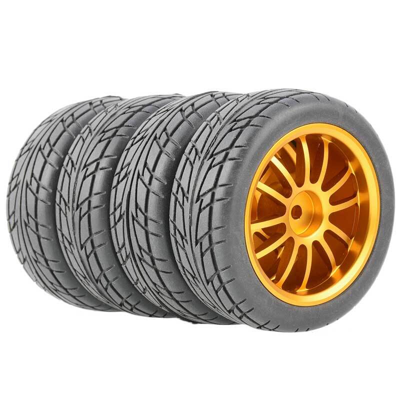 Rc Car Aluminium Alloy Wheels and rubber tires. SUPER DURABLE, NOT LIKE THE PLASTIC ONE, IT IS FULL METAL! Will fit 1/10 onroad rc cars. Specifications: Wheels Material:Aluminum alloy Rubber tires Tyre Diameter: 65 mm Wheel Rim Drive Hex: 12mm Tyre Diameter: 65 mm Tyre Width: 26mm Package includes: 4 x RC Wheelw and rubber tires NOTICE: The wheels and tires are not glued together and must be glued before use. Please carefully check the tire size before purchase, whether it is the same as your model tire size, and confirm it again before payment, so as not to return the refund, thank you, wish you a happy shopping.