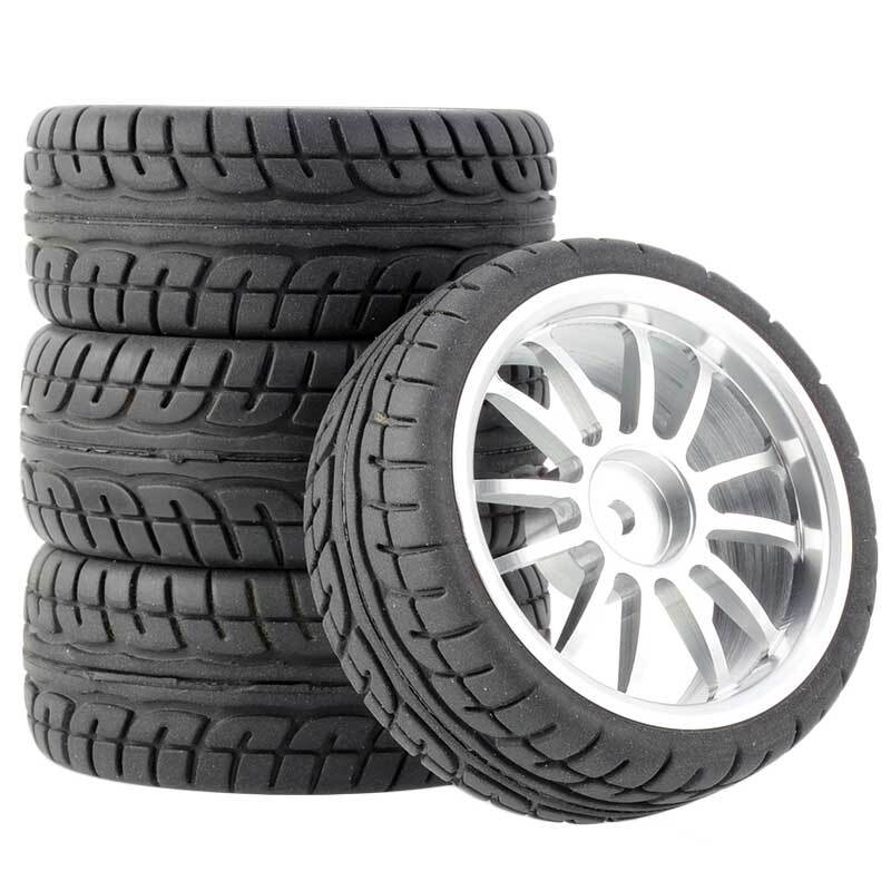 Rc Car Aluminium Alloy Wheels and rubber tires. SUPER DURABLE, NOT LIKE THE PLASTIC ONE, IT IS FULL METAL! Will fit 1/10 onroad rc cars. Specifications: Wheels Material:Aluminum alloy Rubber tires Tyre Diameter: 65 mm Wheel Rim Drive Hex: 12mm Tyre Diameter: 65 mm Tyre Width: 26mm Package includes: 4 x RC Wheelw and rubber tires NOTICE: The wheels and tires are not glued together and must be glued before use. Please carefully check the tire size before purchase, whether it is the same as your model tire size, and confirm it again before payment, so as not to return the refund, thank you, wish you a happy shopping.