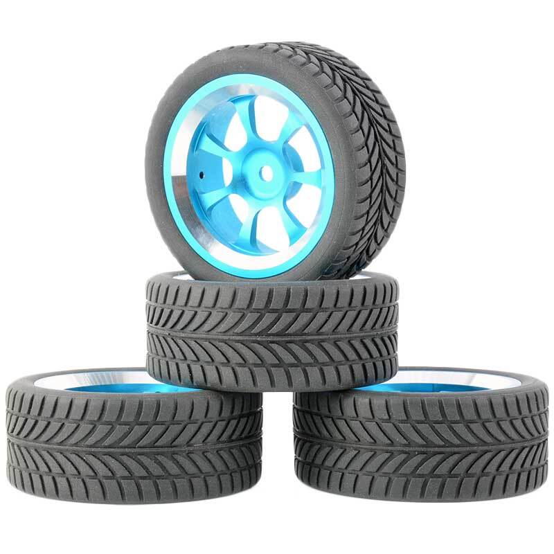 1/10 Onroad Touring Rc Car Alloy Wheels Rims Tires For Tamiya Hpi Kyosho Traxxas. Rc Car Aluminium Alloy Wheels and rubber tires. SUPER DURABLE, NOT LIKE THE PLASTIC ONE, IT IS FULL METAL! Will fit 1/10 onroad rc cars. Specifications: Wheels Material:Aluminum alloy Rubber tires Tyre Diameter: 65 mm Wheel Rim Drive Hex: 12mm Tyre Diameter: 65 mm Tyre Width: 26mm Package includes: 4 x RC Wheelw and rubber tires NOTICE: The wheels and tires are not glued together and must be glued before use. Please carefully check the tire size before purchase, whether it is the same as your model tire size, and confirm it again before payment, so as not to return the refund, thank you, wish you a happy shopping.