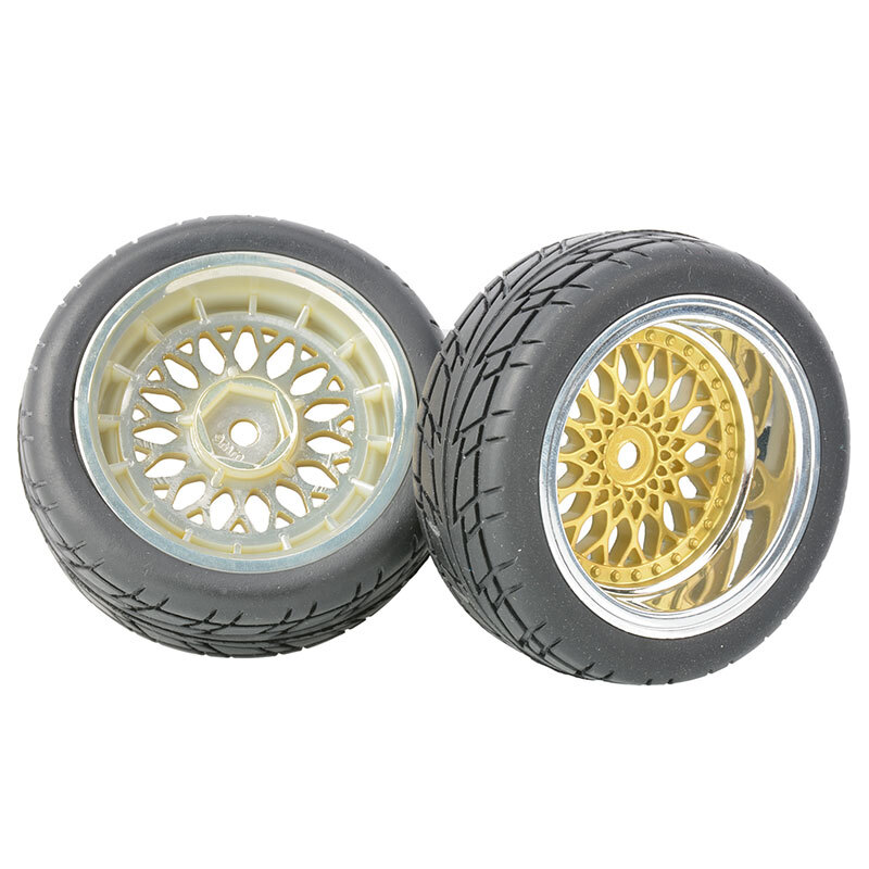 1/10 R/C Multi Cross Spoke Style Wheel and Tyre Set in Chrome for Tamiya TT01 TT02 etc 100% Brand New Plastic Wheel / Rubber Tires Rubber Tires Diameter: 65mm / Width: 26mm Wheel Diameter: 52mm / Width: 26mm Wheel Hex Drive: 12mm Offset: 3mm / 6mm / 9mm 4xWheel and 4xTires Complete, Insert Sponge. Note: Wheels and tires no glue and can be split This color photographs and pratical items May have little color difference! The wheels and tires are not stuck together, and must be glued before use. Please check the tire size carefully before purchase, and make sure that it is shared with your model car before payment, so as not to load your model car and return it, thank you, I wish you a happy shopping!
