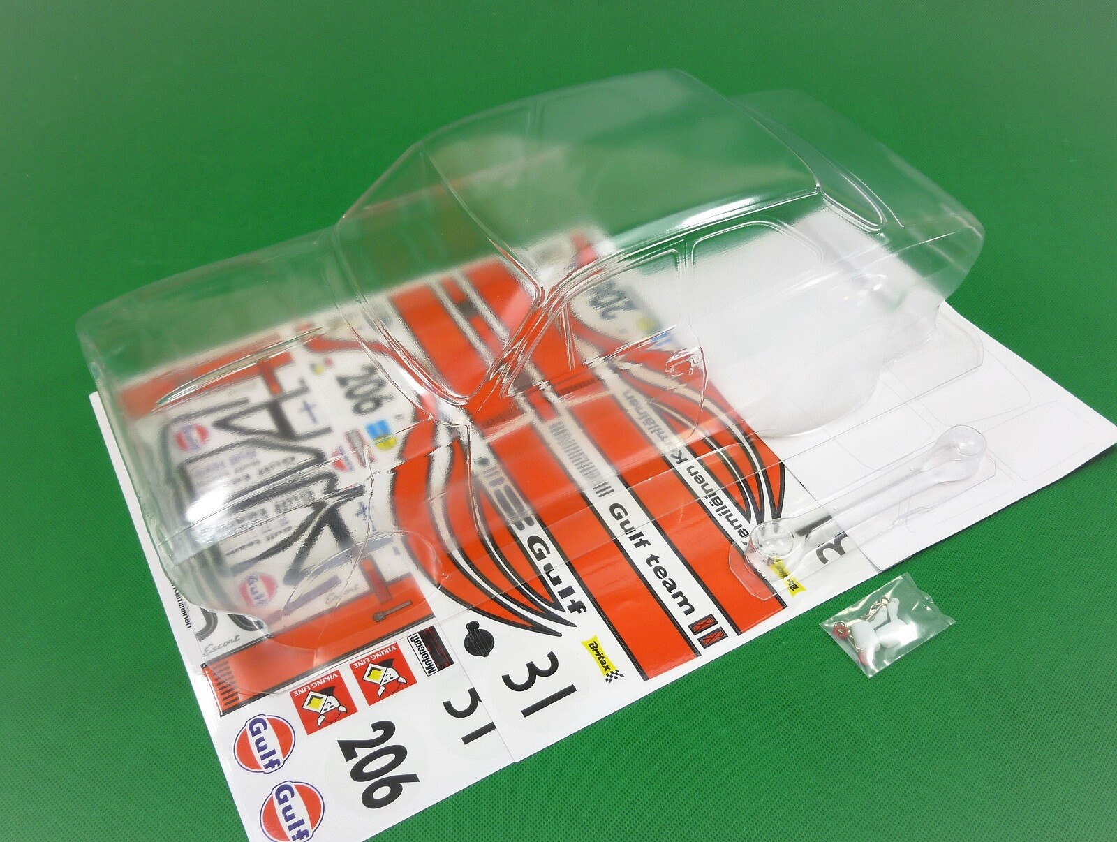 AS ALWAYS - before purchase - check the specs given below to ensure this body shell is suitable for your needs. CLEAR UNPAINTED Polycarbonate BODY SHELL to suit a 1:10th scale touring or rally car (not suitable for buggy or monster truck). NOT suitable for any Tamiya M chassis cars. Lexan is a brand name for polycarbonate, a strong, durable, and impact-resistant thermoplastic known for its exceptional strength, clarity, and heat resistance. Body shell is as per pics #3~ #5 above --Classic Ford Escort Mark 1 - supplied with Gulf Oil stickers - pic #7 & #8, front light buckets and rear view mirrors-pic #6 window/paint masks also supplied- see pics #2 & 3 Pic #1 is a sample picture only of what your finished shell could look like and as a reference for sticker placement. Body shell is for a chassis (wheelbase) of 258 mm and wheeltrack (width of 190mm). Manufactures specs quoted. Item is new in manufacturers packing. Note that often shells are trimmed for freight purposes so excess plastic may be less than shown above. This item will be sent in a box (for safety) not a bag. Part # mk1-31 Gulf. Check out other great bargains in my E b a Y store , including more body shells. I am not a "drop shipper", all products are in stock in Australia being sold by an Australian seller. POSTAGE - AUSTRALIAN CUSTOMERS . If you want to use the Express Post service please buy one item and select Express post, then buy any other items you want with regular post (the default option). All items will be sent together via Express Post service……… INTERNATIONAL CUSTOMERS . For post quotes for multi item orders please message me. Thanks. All duties and taxes (if applicable) are the responsibility of the buyer. If you have any questions or special requests regarding this please feel free to message me. Manufacturers are constantly improving products and changes are made without prior notice. This means that changes can be made to products (including slight colour changes) from time to time. These changes in no way constitute any intent to change the basic description of an item, nor do they constitute a reason for an items return or warranty replacement. Return Policy: Any returns will be handled as per Ebay’s return policy. Returned items must be new, unopened and undamaged. Opened returns will attract a 50% “reduced value” fee. Any unrecoverable costs and fees incurred (by me) will be deducted from any refund issued. Warranty: items have a 30 day warranty, except drift wheels – which is ‘dead on arrival’ only. Warranty doesn’t cover crash damage, poor maintenance, misuse or incorrect assembly. Warranty covers sold items only.
