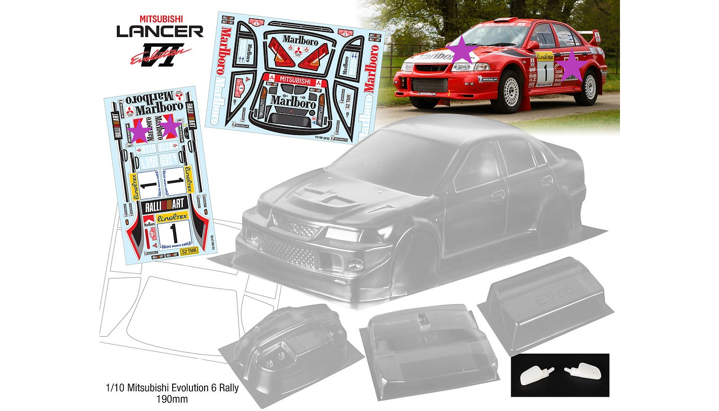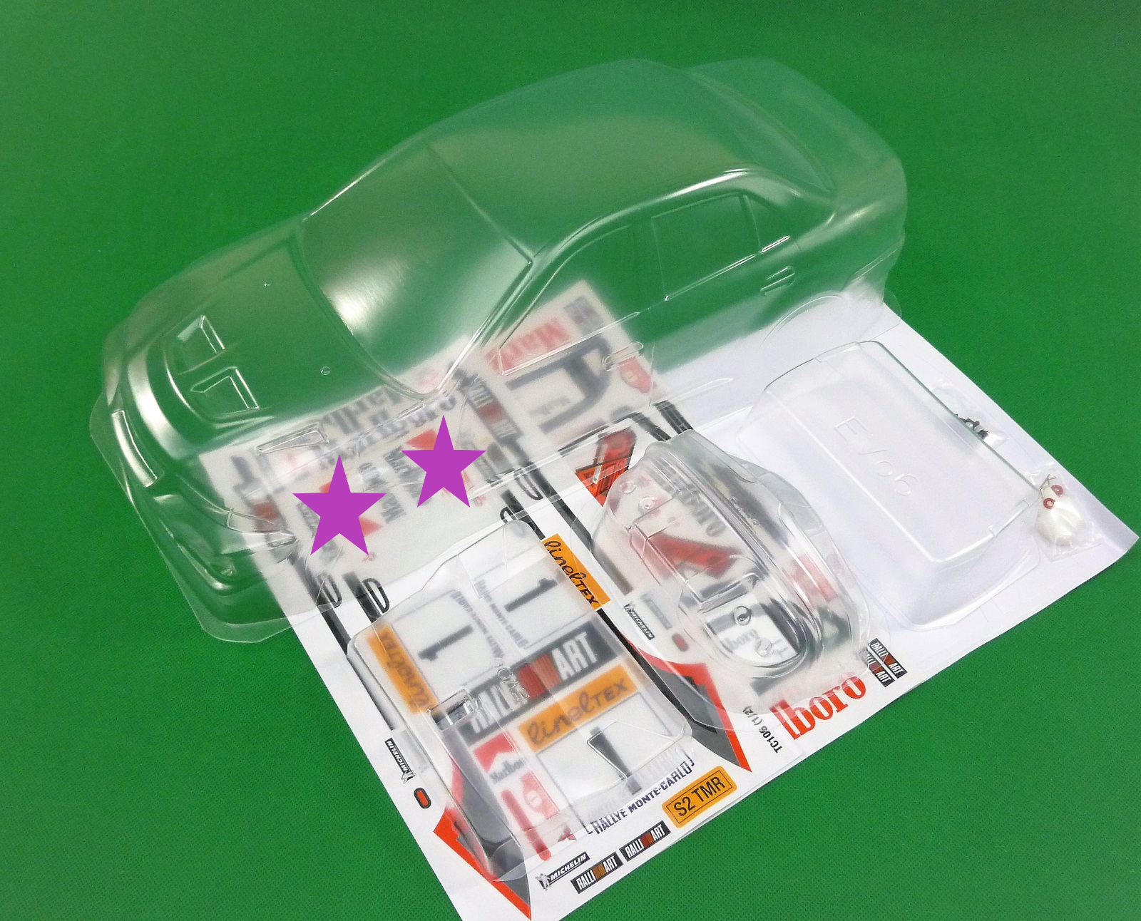 AS ALWAYS - before purchase - check the specs given below to ensure this body shell is suitable for your needs. CLEAR UNPAINTED Polycarbonate BODY SHELL to suit a 1:10th scale touring or rally car. Body shell is as per pics #3~ #6 above --Mitsubishi Lancer EVO 6 - Evolution WRC model- supplied with #1stickers - pics #8 & #9 (pic #8 is a close approximation to the stickers supplied-the little red Marlb "house" is copyrighted and can't be displayed), supplied with wing, light buckets & rear view mirrors -see pic #7 window/paint masks also supplied- see pics #2 & #3. Shell is covered with clear spray film. Pic #1 is a sample picture only of what your finished shell could look like and as a reference for sticker placement. Body shell is for a chassis (wheelbase) of 258 mm and a wheel track of 190mm (manufacturers specs quoted). Item is new. Part # 106 #1 Check out other great bargains in my E b a Y store , including more wheels and tyres. Note that often shells are trimmed for freight purposes so excess plastic may be less than shown above. This item will be sent in a box (for safety) not a bag. I am not a "drop shipper", all products are in stock in Australia being sold by an Australian seller. POSTAGE - AUSTRALIAN CUSTOMERS . If you want to use the Express Post service please buy one item and select Express post, then buy any other items you want with regular post (the default option). All items will be sent together via Express Post service……… INTERNATIONAL CUSTOMERS . For post quotes for multi item orders please message me. Thanks. All duties and taxes (if applicable) are the responsibility of the buyer. If you have any questions or special requests regarding this please feel free to message me. Manufacturers are constantly improving products and changes are made without prior notice. This means that changes can be made to products (including slight colour changes) from time to time. These changes in no way constitute any intent to change the basic description of an item, nor do they constitute a reason for an items return or warranty replacement. Return Policy: Any returns will be handled as per Ebay’s return policy. Returned items must be new, unopened and undamaged. Opened returns will attract a 50% “reduced value” fee. Any unrecoverable costs and fees incurred (by me) will be deducted from any refund issued. Warranty: items have a 30 day warranty, except drift wheels – which is ‘dead on arrival’ only. Warranty doesn’t cover crash damage, poor maintenance, misuse or incorrect assembly. Warranty covers sold items only.