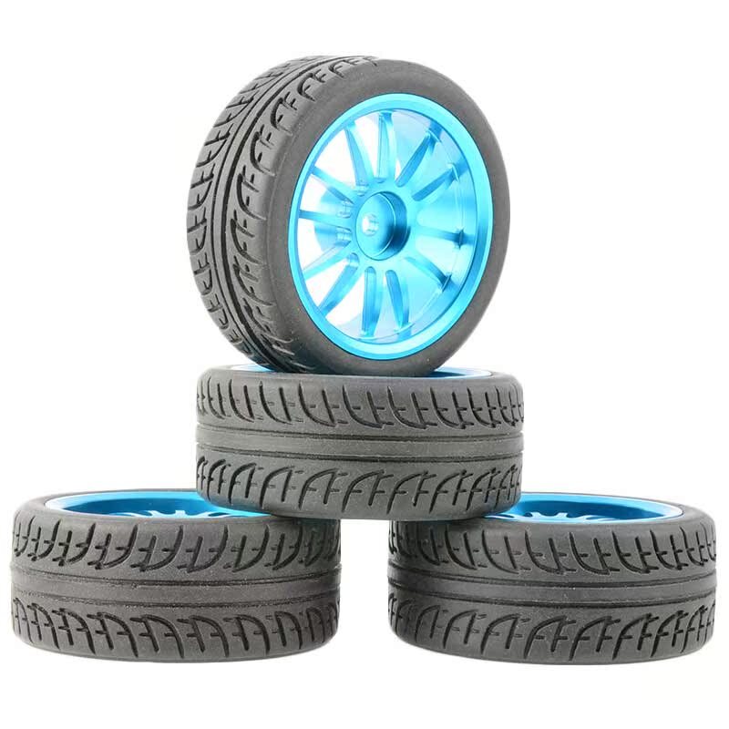 Rc Car Aluminium Alloy Wheels and rubber tires. WHEELS ARE SUPER DURABLE, NOT LIKE THE PLASTIC ONE, IT IS FULL METAL! Will fit 1/10 onroad rc cars. Specifications: Material:Aluminum alloy Offset: 3mm Heel Size:5.2 x 2.6cm/ 2.05 x 1.02inch (Dia x W) Hex adapters:12mm Rubber Tires Wheels and tires are not glued together Package include: 4 x metal Wheels 4 x Rubber Tires Condition: New NOTICE: The wheels and tires are not glued together and must be glued before use. Please carefully check the tire size before purchase, whether it is the same as your model tire size, and confirm it again before payment, so as not to return the refund, thank you, wish you a happy shopping.