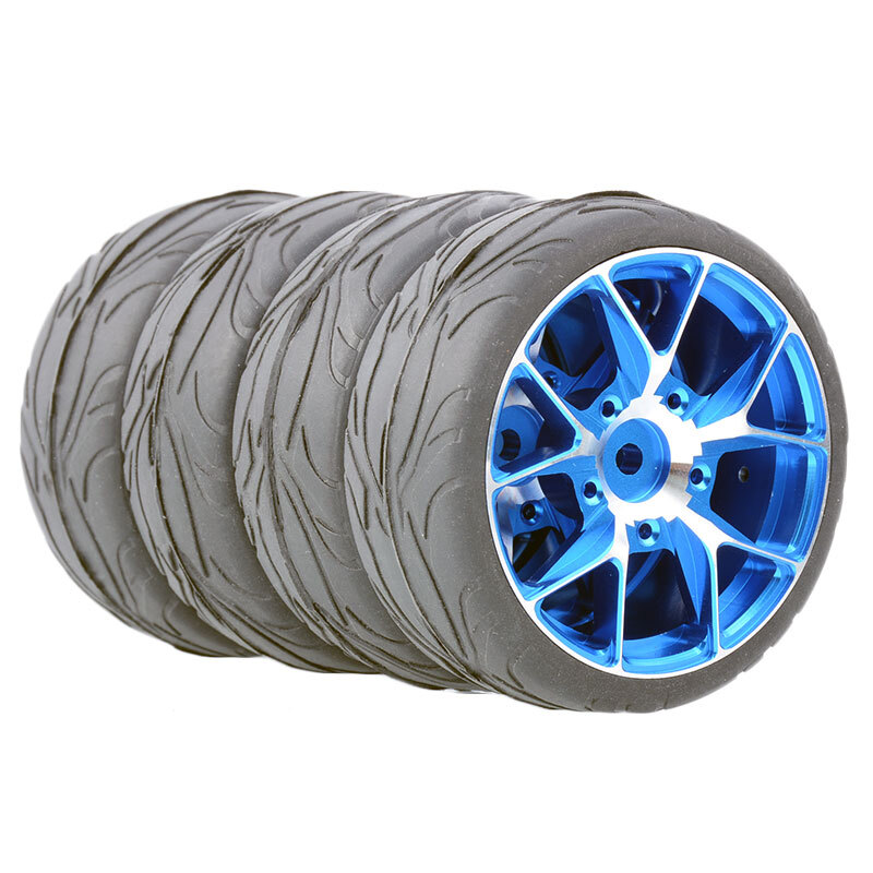 Rc Car Aluminium Alloy Wheels and rubber tires. SUPER DURABLE, NOT LIKE THE PLASTIC ONE, IT IS FULL METAL! Will fit 1/10 onroad rc cars. Specifications: Wheels Material:Aluminum alloy Rubber tires Tyre Diameter: 65 mm Wheel Rim Drive Hex: 12mm Tyre Diameter: 65 mm Tyre Width: 26mm Package includes: 4 x RC Wheelw and rubber tires NOTICE: The wheels and tires are not glued together and must be glued before use. Please carefully check the tire size before purchase, whether it is the same as your model tire size, and confirm it again before payment, so as not to return the refund, thank you, wish you a happy shopping.