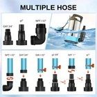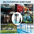 850W 15000L/h Electric 3-in-1 Multi-Purpose Submersible Pump is designed to solve your drainage challenges, from basement draining, garden irrigation, spa circulation, hot tub draining, pond maintenance, and flooded yard tank draining. Versatile 3-in-1 Bottom Filter Mode: portable water pump is designed with a 3-in-1 bottom filter system, allowing you to easily switch between clean, sewage, and base filter modes. Whether you're draining crystal-clear water, handling muddy or debris-filled water, or filtering from the base for thorough drainage, this pump adapts to various scenarios with ease and precision Powerful Flow: sump pump with a 1.15HP power motor drains water at up to 3960 gallons per hour. Featuring a powerful flow rate, it ensures efficient drainage even when the head is increased, and the flow curve drops Wide Applications: 1-1/2'' NPT discharge includes a 1-1/2'' elbow adapter, 3/4'' garden hose adapter, and 1" hose adapter, fitting 3/4'', 1'', 1-1/4'', or 1-1/2'' pipes/garden hoses. It's ideal for clean or dirty water, it’s perfect for draining hot tubs, water heaters, basements, gardening, and car washing Smart Float Switch: The built-in float switch automatically starts and stops the pump to avoid dry burning and damage. Strong interface adaptability, suitable for a variety of connection needs Safety, Reliability, and Durable Construction: sump pump features an all-copper motor with overload and overheat protection for long-lasting, stable performance. Its stainless steel casing and thermoplastic base ensure durability, corrosion resistance, and rust protection, while the extended power cord allows for convenient use in hard-to-reach areas