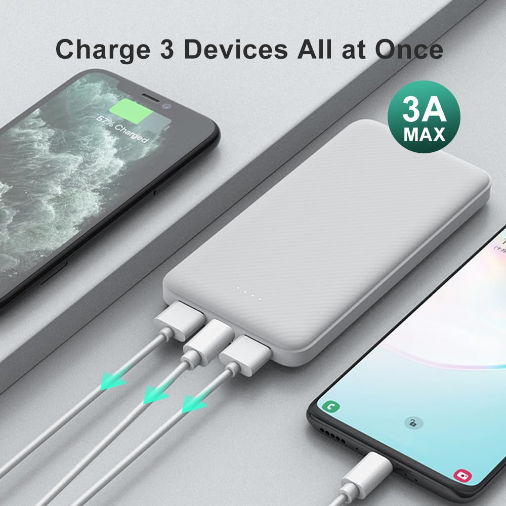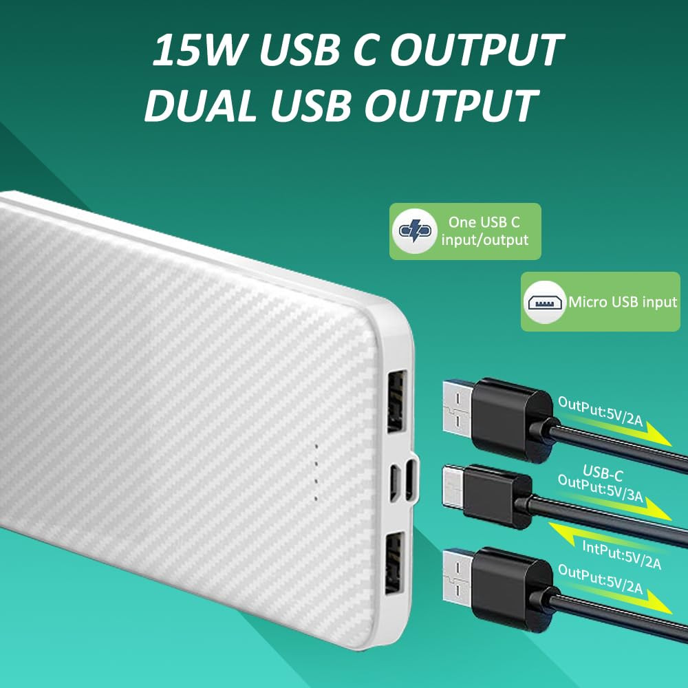 Ultra-thin 12000mAh Power Bank: With an ultra-thin 15.3mm body, this power bank offers a 12000mAh battery capacity, capable of charging your phone and mobile devices multiple times. Its slim design makes it easy to carry and slip into a pocket or bag, making it an essential power source for travel. 3A USB C High Speed Output: 3A USB-C high speed output port with 15W fast charging capability. equipped with 1 USB C (5V/3A) output/(5V/2A) input port, 2 USB A (5V/2A) output ports, 1 Micro (5V/2A) input port, power bank for charging 3 devices simultaneously Safety Protection: built-in intelligent chip, providing a variety of safety protection, (voltage, current, battery, circuit, charging, temperature, short circuit, reset protection), and with CE and UL certification, can be carried on the plane, to ensure your charging safety LED Power Display: The power bank supply has 4 LED display lights, which can clearly see the remaining power, and can also prompt the input and output status when charging Wide Compatibility: Compatible for iPhone, Samsung, Huawei, iPad and other mobile devices, you will get (1*12000mAh Portable Charger, 1*USB C Cable, 1* User Manual, 1* Customer & Warranty Service)