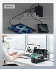 120W POWERFUL USB CHARGING STATION:Not like other charging stations with short, unstable and fragile plastic/wood dividers, the fast charging station for 10 electronics devices charging at full speed simultaneously, Built-In smart chip automatically recognize, adjusting and distributing the optimal output, each device can get the max charging speed (each 5V/2.4A, total120W ) REAL SPACE SAVER: It is a pain to find all your devices when you have them charging in different rooms. This space saver charging dock keeps your iPad, Kindle, phone and headset charged in an organized manner. It neatens up your collections of devices and is able to charge everything in one place. It works great for most tablets/smartphone with STANDARD cases (thick and big covers may not fit) TEMP-SENSITIVE COOLING FAN: Inappropriate uses such as overloading/over- voltage/accidentally covered by quilts without being noticed are the root cause of temp increase. The controller inside then detects and takes actions at all times to cool down (≥ 60) the body and auto shuts down (temp reaches 100) to protect your devices SUITABLE FOR ANY OCCASIONS: The multi charging station is ideal whether for any occasions using to charge kindles or tablets, smartphones when your nephew, niece, friends or guests come over. Having 10 muilti ports are absolutely enough! Now no more dangling cords or people trying to find plugs. Great for company,home, hotel, restaurants, classroom What You Get: 1 x Charging Station, 4 x USB C Cable, 4 x Lighting Cable, 2 x Micro USB Cable, 1 x User Manual, 1 x Service Card; provides 12 months warranty and lifetime technical support for purchase via Direct Store. Charging Stations have ETL, FCC, CE and RoHs certifications. 100% no reason warranty