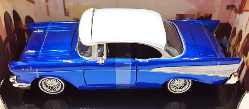 Absolutely love this 1957 Chevy Bel Air! The metallic blue and white paint job is stunning, and the diecast quality feels premium. Every detail is crisp, from the chrome accents to the sleek interior. The mint condition and perfect packaging make it a must-have for collectors. A fantastic addition to any display!