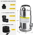 1/2HP Submersible Utility Pump, 3030GPH Stainless Steel Sump Pump, Water Removal for Basement Hot Tub Pool Cover Draining, 30ft Cord Color Stainless Steel Material Stainless Steel Style 1/2HP 3030GPH Stainless Steel Product Dimensions 6.1"L x 6.1"W x 8.7"H Power Source ac Item Weight 13.73 Pounds Maximum Flow Rate 50.5 Gallons Per Minute Maximum Lifting Height 25 Feet Voltage 115 Volts (AC) About this item Powerful Motor: Submersible utility pump features an efficient capacitor motor with high flow and low consumption. 1/2HP motor can move up to 2820GPH at 5ft and lift water up to 24.5ft vertically, perfect for hot tub and basement drainage. It can also transfer clean water for garden irrigation. Durable & Handy: Quilty stainless steel housing with high-performance impeller ensures corrosion resistance and durability. Carrying handle and 30ft UL power cord for portability and convenience. 1-1/4’’ discharge with 3/4’’ garden hose adapter & 1-1/4’’ elbow adapter, easy to install. Safe & Simple Operation: Built-in thermal overload protection prevents the motor from overheating and burning. Internal air relief valve prevents airlocks. 100% factory tested. Manual electric water pump is easy to operate. Plug and play. Oil-free Design: The small sump pump is eco-friendly and safe for aquatic life. Premium mechanical seal and bearing ensure low noise and long service life. Removable suction strainer filters out debris, easy to clean and maintain. Fully immerse the pump before startup and prevent it from freezing in winter. Wide Applications: This residential/light commercial duty pump is ideal for draining water from flooded basements, aquariums, rain barrels, window wells, hot tubs, pool covers, crawlspace, ponds, and general water transfer. Please note that water spraying from the top of the pump is a normal venting phenomenon. 11 Qt Hard Sided Cooler Travel Ice Chest Box Camping Beverage Cooler Portable 51.97 USD Free shipping Rolling Tool Chest 4 Drawer Steel Tool Box W/ Locking Casters Garage Storage New 216.59 USD Free shipping 40V Battery Hedge Trimmer 20 in Dual Blade 5/8in Cut Capacity Adjustable Head US 153.89 USD Free shipping Convertible Loveseat Sofa Bed Modern Upholstered Recliner Futon Couch W/ Pillows 138.72 USD 150.78 USD Free shipping 8% off Cook n Play BBQ Grill Playset Kids Kitchen W/ Accessories Oven Dual-Level Grill 79.77 USD Free shipping Portable Greenhouse Tunnel Galvanized Steel Frame PE Cover Ventilation Windows 91.19 USD Free shipping Heavy Duty Walk-in Greenhouse Portable Tunnel Zipper Door Galvanized Frame Green 115.21 USD Free shipping Mini Walk-in Greenhouse Kit Portable Green House W/ 3 Tier Shleves Roll-Up Door 74.04 USD Free shipping Portable Walk-in Greenhouse W/ Shelves Heavy Duty Waterproof Gardening System US 52.43 USD Free shipping Walk-in Greenhouse Sturdy Frame UV Resistant Zipper Doors Plant Gardening Green 87.54 USD 95.15 USD Free shipping 8% off Compact Heavy-Duty Outdoor Mini Greenhouse Seed Starting & Plant Growth Portable 45.49 USD Free shipping Deluxe Walk-In Greenhouse with 12 Shelves Indoor Outdoor Plant Protection 215.99 USD Free shipping