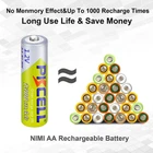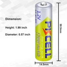 Product Features: 1300mAh high capacity- Lasts longer, suitable for high drain devices. No pollution to the environment- Produce less waste than disposable batteries. Rechargeable battery- Up to 1000 recharge cycles No memory effect- Longer service life than Ni-Cd batteries Superior performance- Wide range of operating temperatures(-20°C~+55°C). Wide range of applications- Digital cameras, portable video, games, flashlights, remote controls, toys, MP3/MP4 players, electric razors, etc. Product Specification: Brand: PKCELL Model: NiMh AA 1300mAh Rechargeable Batteries Volt: 1.2Volt Nominal Capacity:1300mAh Charging Cycles:At Least 1000 Cycles Standard Charge Current:130mA Time:15H Rapid Charge Current:1300mA Time:1.2H Weight:App 25g/pcs Size: Dimension (max):Diameter:14.5(mm) Height:50.5(mm) Note: -Standard Charging:These rechargeable NiMH batteries can be charged via NiMH or universal charger. -Charge before using them to make them work longer. Package includes: 12pcs AA 1300mAh NiMH Rechargeable Batteries