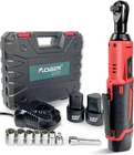 ⚡ Powerful Torque - AOBEN electric ratchet wrench offers 12 Volt Max motor and plenty torque at 40ft-lbs to remove or install bolts (or nuts). Includes 2 battery, 1 charger and 8 bolts. ⚡Superior Fastening Speed- Ratchet wrench set superior fastening speed: produces 280rpm with a variable-speed trigger for excellent control. ⚡ Led Lighting - LED light on the front of the unit lighting the workplace for you in the dark. Lights on the side of the unit will let you know how much power you have left. ⚡Switch & Heat-Sinking - Backward switch on the back of the head prevents accidental actuations. Air-cooled motor, strong heat-sinking capability, can stabilize the working temperature of batteries. ⚡What You Will Get-▲1 x AOBEN Cordless Ratchet ▲2 x 2000Ah Lithium Ion Batteries ▲1 x charger ▲6 x Different size of sockets ▲1 x 1/4 inch adaptor ▲1 x 3 inch extension bars ▲1 x manual ▲1 x Carry case Product Description AOBEN Device bends itself to professional TOOL Manufacture since1986, sticking to a principle “ Easy and Safe Working”. User experience & Trust is our direction. This series of device is colored classical dark red and black, motivating work enthusiasm, conspicuous but low-key. Fond of doing small mechanic projects all by yourself? If yes, then AOBEN is surely your wisest choice! The tool kits offered by the brand makes your home projects effortless, easy and exciting! The set of electric ratchet wrench offered by the brand are fine-crafted to help you with removing or installing nuts and bolts in a jiffy! Whether it is a simple pair of nut & bolt or complicated mechanism under the hood of your car, you would definitely require a set of spanners handy. Here comes the use of an electric ratchet wrench, which acts as a smart replacement for the conventional spanners, thereby reducing your manual work to a great extent! The chargeable tool kit is surely a wonderful addition to your gadgets for repairs. Safety Features The LED Lighting at the front portion of the unit helps you to work in dim light. The power button of the unit is located at the back of the ratchet’s head, so that you do not switch it on accidentally when you are in the middle of work. The heat-sinking feature of this gadget avoids overload by maintaining optimum working temperature of the batteries. 12V High-Performance Max Motor The powerful 12V Max Motor is made to deliver up to 40ft-lbs Torque, for higher fastening speed. Power indicator Green light :80%-100% power Yellow light:50%- 80% power Red light:Less than 50% power Ergonomic Handle The ratchet wrench has a good grip. So, you can work with it even in odd positions without the fear of the tool slipping away from your hand. Fast & Flexible The ratchet works in a clockwise direction swiftly, which in turn helps you loosen or tighten the nuts quite easily. Compact and Organized Tool Box You can keep all the pieces of the gadget well-arranged in this compact tool box, at their respective designated places. Fast Charger& 2 Batteries The ratchet wrench comes with a set of 2 long lasting & rechargeable 12V Lithium Ion Batteries and 60-minute Fast Charger.