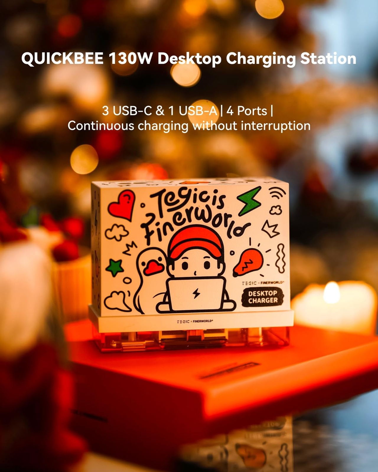 USB C Charger 130W, GaN Charger, Digital Fashion Desktop Charging Station, Fast Charger with Three Mode Switch for Phone 15/14/Pro/Max, Pad, MacBook, Galaxy S24/S23, Note 20, Pixel, Steam Deck Product Details Brand: TEGIC Connectivity Technology: USB Connector Type: USB Type C, USB Type A Compatible Devices: Phones/ MacBook Air 2020 / ThinkPad X1 / X390 / E490/ Google Pixelbook / Dell XPS 13 9360 / 9380 / iPad Air 5 / 4 / iPad Pro 2021 / 2020 / 2018/ AirpodsPhones/ MacBook Air 2020 / ThinkPad X1 / X390 / E490/ Google Pixelbook / Dell XPS 13 9360 / 9380 / iPad Air 5 / 4 / iPad Pro 2021 / 2020 / 2018/ Airpods See more Compatible Phone Models: Apple iPhone 14, iPhone 14 Pro, iPhone 14 Pro Max, iPhone 13, 13 Pro, 13 Pro Max, iPhone 12 Pro Max, iPhone 12 Pro, iPhone 12, iPhone 12 mini, iPhone XR, iPhone XS Max, iPhone XS, iPhone X, iPhone 8 Plus, iPhone 8, HTC U12+, Galaxy S23+, Galaxy S23, Google Pixel 3 XL, Google Pixel 3, iPad Pro (12.9") 2nd Gen, iPad Pro (10.5"), Huawei Mate 20, Huawei Mate 20 Pro, Huawei P30/P30 Pro, Sony Xperia XZ2, and more See more Included Components: 130W Charging Station, Power Cord Special Feature: transparent materials, be seen circuit board design, flashy graffiti, Short Circuit Protection, ensures uninterrupted charging, Fast Charging, Charging Indicator See more Color: Orange Input Voltage: 240 Volts Mounting Type: Tabletop Mount Product Dimensions: 3.9 x 3.4 x 1.4 inches Item Weight: 14.4 ounces Item model number: QB-130W Date First Available: April 17, 2024 Manufacturer: Hangzhou Ersanwujiu Technology Co., Ltd. Country of Origin: China Geek Design: TEGIC breaks tradition, that revolutionizes the concept of charging. The exterior of the charging station is designed in a graffiti style to bring art into your life Safe & Fast Charging: It is a 130W Desktop Charging station, featuring 3 USB-C and 1 USB-A port, allowing for the simultaneous charging of four devices uninterrupted while port switching. An LED display screen allows you to know the real-time output of each of your devices and the total output as well GaN Technology: Providing faster and more efficient charging, GaN technology ensures greater stability and safety during use than other 130 watt USB C charger Charge Everything: It can be used with a variety of devices, including iPhone 15 and earlier, various iPad models, AirPods, and Apple Watch. This versatile charging block is also compatible with many Android smartphones, including Samsung Galaxy and Google Pixel What You Get: 1 x USB C Charger, 1 x Instructions, 1 x Power Cord