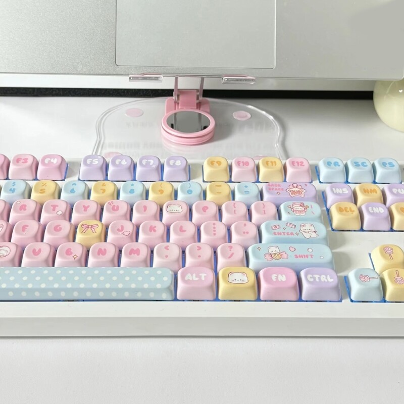 Features: MOA Height Candy Bear keycaps with 131keys to fit most mechanical keyboards, providing a comfortable feel and excellent key feedback. Candy Bear thick PBT keycaps which is wear-resistant and not easy to fade; Unique candy color design adds a personalizing to the keyboard; Simple installation allows for easy keycap replacement and easy cleaning. Suitable for keyboard enthusiasts, programmers, gamers who like to personalize their keyboards Provides a comfortable using experience. Suitable for most mechanical keyboards to bring users a pleasant keyboard input experience. Specifications: Total Keycaps:131pcs Keycaps Material: PBT Height :MOA Height Theme:Candy Bear Printing Method: Heat Sublimated Package Includes: 131keys Keycaps note: Only Keycaps.(Without retail package) Please allow 1-3mm error due to manual measurement.Please make sure do not mind before bid. The color may have different as the differences display,please understand.