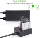 【Higher capacity】 This action camera 1350mAh rechargeable battery is a must-have accessory for your sports camera. Its capacity is 30% higher than that of a 900mAh battery, which means your action camera's recording time is extended by 30%. We have prepared 2 x 1350mAh batteries for you, so you never miss any fantastic moments. 【Higher quality】 This 1350mAh action camera battery is surrounded by aluminum alloy material, which is more efficient, more durable, has higher heat dissipation performance, longer service life, and is safer and more reliable to use.Therefore, you don't have to worry about battery damage. 【Fast Charging】 This action camera battery charger design is convenient to charge 2 batteries at the same time, saves charging time efficiently.The battery charger RED light shows that the battery is charging, BLUE light shows that the battery is full charged or no battery in charging. 【Wide Compatibility】 Compatible with AKASO EK7000/Dragon Touch/Campark/Crosstour/APEMAN/EKEN/DBPOWER/BOIFUN/Davola/JEEMARK/TENKER/COOAU/GeeKam/Apexcam/BOIFUN/Lightdow/SJ4000/PG1050/PG900/S009R,please check the Product Description for the detailed model. 【NOT Compatible Models】 AKASO : V50 pro / V50 Elite / Brave 7/Brave 7 Le ; Victure : AC940; Campark : V40; VanTop : Moment 3 / Moment 4; SJCAM : SJ8 AIR / SJ8 PLUS / SJ7 Star / SJ6 Legend / M20 / M10; Gopro series / YI series / DJI series / AEE series Product Description Compatible models: AKASO Compatible : EK7000, EK7000 Pro, Brave 4, Brave 6, V50X, Brave 6 Plus Dragon Touch Compatible : Vision 1, Vision 3, Vision 3 Pro, Vision 4, Vision 5 Campark Compatible : ACT74, X5, X15, X20, X25, X30, X35, X40, V20, V30 Crosstour Compatible : CT7000, CT8500, CT9000, CT9100, CT9300, CT9500, CT9700, CT9900 APEMAN Compatible : A77, A79, A80, A87, A100 Victure Compatible : AC200, AC420, AC700, AC820, AC920 COOAU Compatible : SPC01, SPC02, SPC03, SPC06 Apexcam Compatible : M80 Air, M80 Pro, M90 Pro VanTop Compatible : Moment 4U, Moment 4C Other Brands Compatible : EKEN, REMALI, Vemont, Davola, WEAKNESS, HLS, LByzHan, Yolansin New model? Please ask us a question first. NOT Compatible Models : AKASO Not Compatible : Brave 4 Elite / V50 pro / V50 Elite / Brave 7/Brave 7 Le / Brave 8 Victure Not Compatible : AC940 Campark Not Compatible : V40 VanTop Not Compatible : Moment 3 / Moment 4 SJCAM Not Compatible : SJ8 AIR / SJ8 PLUS / SJ7 Star / SJ6 Legend / M20 / M10 WOLFANG Not Compatible : GA400, GA420 Other Brands Not Compatible : XTU series / GoPro series / YI series / DJI series / AEE series Action camera battery This 1350mAh sports camera battery, surrounded by aluminum alloy metal material, is more durable, has better heat dissipation performance, longer service life, and is safer and more reliable during use. Batte ry Details: Battery capacity: 1350mAh * 2 Battery voltage: 3.7 V, 4.995 Wh Battery type: lithium- Ion Size: 3.3*3*1.1cm Weight: 20.5g Action Camera Battery Charger Dual-slot charger base can hold 2pcs batteries simultaneously, Save the time for charging battery one by one. Charger Indication: When power in(without batteries), the indicator light is blue. When charging battery, the indicator light is red. When fully charged, the indicator light is blue. Package included: 2pcs 1350mAh Batteries 1pcs USB Dual Charger 1pcs USB Micro Cable Replacement Battery Pack and Battery Charger for Action Camera Products Features: More Safer: The batteries set are designed with built-in intelligent chip provide over-voltage protection, over-current protection, short-circuit protection, over-charge protection, and over-heat protection, safe for your device; Smart LED Indicator: Individual battery charger with 2 LED light, easily check the charging status. Power on (without batteries) - Blue. Charging - Red, Fully Charged - Blue.