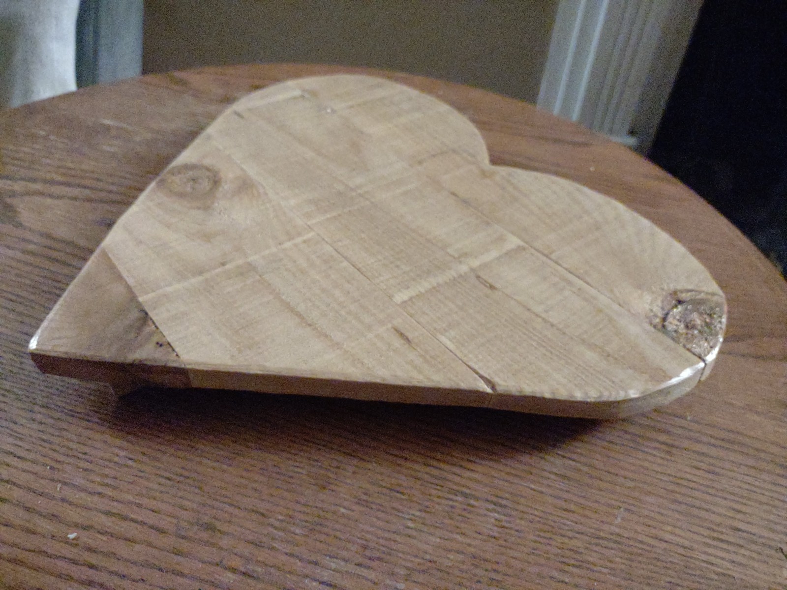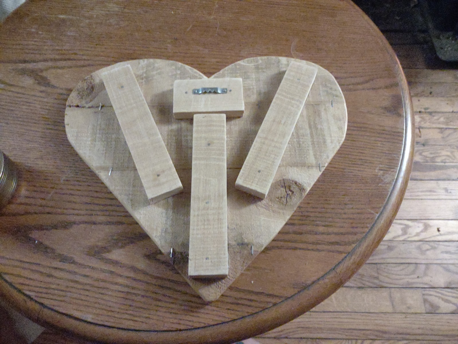 The 14" x 12" Rustic Pallet Wood Heart Decor is a charming and rustic decorative piece for your home. Made of wood with a primitive style, this heart-shaped plaque adds a touch of love and warmth to any space. Measuring 14 inches in height, this unique piece is perfect for displaying on a shelf or wall, adding a personal and cozy feel to your living decor.