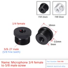 Description: Threaded adapter can connect the microphone to the microphone holder, Converting the microphone holder and accessories from 1/4 inch internal thread to 5/8 inch external thread. Tripod screw adapter is made of solid aluminum alloy with smooth finish and metallic luster. The surface of this screw adapter is beautifully engraved with knurling for installing and removing easily. These camera microphone holder adapters are designed for most microphone holders on the market, Please check whether the size is appropriate before buying. Mic adapter is perfect for mounting cameras, recorders, LCD monitors and other accessories on a microphone stand. Specification: New and high quality Product type: tripod PTZ suit Material: aluminum alloy Name: 1/4 female to 5/8 male Applicable to: microphone transfer Color: black, silver Size: as shown in the figure Package Included:1PC Note: Please refer to the measurement. Tiny measuring error is allowable in normal range. As different computers display different colors, thank you for your understanding, the actual product color may be slightly different from the image.