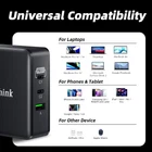 140W USB-C Power Adapter: The 140W USB-C Power adapter, powered by 3rd Gen GaN Technology, adapt to the latest PD3.1, max output at 140W, also support 100W & 65W, fast charge MacBook, iPad, iPhone and other laptops, tablets and phones, easily handle the charging for your digital devices, making charging easy. All in One Charger, the 140W USB C Charger designed with 2 USB-C ports and 1 USB port, compatible with all kinds of charging protocol, easily charge for 3 devices MacBook, iPhone, iPad with optimal charging speed. Fast charging for Samsung Galaxy phones, Nintendo Switch, SteamDeck. XPS, ThinkPad, Chromebook, MacBook Pro/Air, iPad Pro, Apple Watch, iPhone and more. Ideal MacBook Charger Alternative, the 140W USB-C Power adapter is able to deliver 140W charging power for 16inch MacBook Pro, but in 20% smaller size than the original charger. The charger supports to outputs 65W each USB-C port when both plug in, able to charge 2 MacBooks simultaneously. GaN Charger, the 140W USB-C power adapter adopts with the latest Gallium Nitride, the material that's starting to be used for semiconductors in chargers, making the massive power output at ease. Simply better charging efficiency, less heat and reduce the body form. With the foldable prong design, it takes no space for your backpack while being able to power all the devices. Safe Charger with Proven Quality, the 140W USB C charger passed quality certification such as FCC, UL, CE, RoHS, etc. Built in with over-voltage protection, over-charging protection, over-current protection, over-temperature protection, short circuit protection to keep your device charging safe and sound.