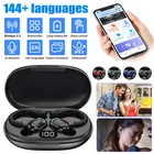 Product Description 144 Language Translator Earbuds Bluetooth Real Time Translation Smart Headphone Features: - Enjoy smooth communication with real-time translation, enabling you to speak face-to-face in different languages. Switch between dual-ear or single-ear mode for effortless and barrier-free conversations. The translation is played directly through Bluetooth earphones for seamless interaction. - The translation function supports multiple modes including single-ear, dual-ear, and mobile external modes, making it ideal for a variety of situations such as business meetings, travel, and more. - Comes with a built-in AI assistant and language-to-text recording function, making it easier to capture conversations, convert them into text, and increase productivity in meetings and business negotiations. - Beyond translation, these earphones offer excellent audio quality for leisure and sports. Ergonomically designed for comfort, they’re lightweight and won’t cause ear fatigue even after prolonged use. - Equipped with dual main control hardware and a large-capacity battery, these earphones provide long-lasting battery life, ideal for both office and outdoor use. The sleek, rounded design features a digital battery level display to keep you informed of your charging status. NOTE: - The headphone translation function is compatible with iPhone phones, and the music and call functions of Bluetooth headphones are normal to use on Android phones; - The translation function is used in conjunction with a mobile app and requires a WiFi or mobile network connection on the phone; - 3 earphones can only be bound to one iPhone at a time. If you want to switch to another phone, please unbind the original phone app now; The distance for headphone microphone reception is limited. Please wear headphones or use them close to the headphone microphone in headphone reception mode. Translation function usage steps: According to the AI translation function user manual, download the APP to the phone - turn on the earphones, connect the earphones to the Bluetooth list on the phone - open the APP, and scan the matching code on the manual in "Add Device" to add your earphones to the APP (the matching QR code is at the end of the translation manual, if not found on the English page, please flip to the Chinese page) - select the mode and language, and start using Specification: Material: ABS silicone Bluetooth version: 5.3 Bluetooth connection distance: 10m Media used: APP Supported translation languages: 144 languages Real time translation: Yes Other functions: voice to text, AI assistant Earphone battery capacity: 70mAh Earphone single battery life: 5-6 hours Charging compartment battery capacity: 400mAh Battery life with charging compartment: 15 hours Earphone charging time: 1.5 hours Frequency: 20Hz-20KHz Sensitivity: 85dB/mW Waterproof grade: IPX 5 Packing list: 2 x Translate headphones 1 x Headphone manual 1 x AI Translation Function User Manual 1 x USB charging cable