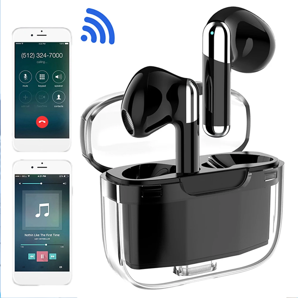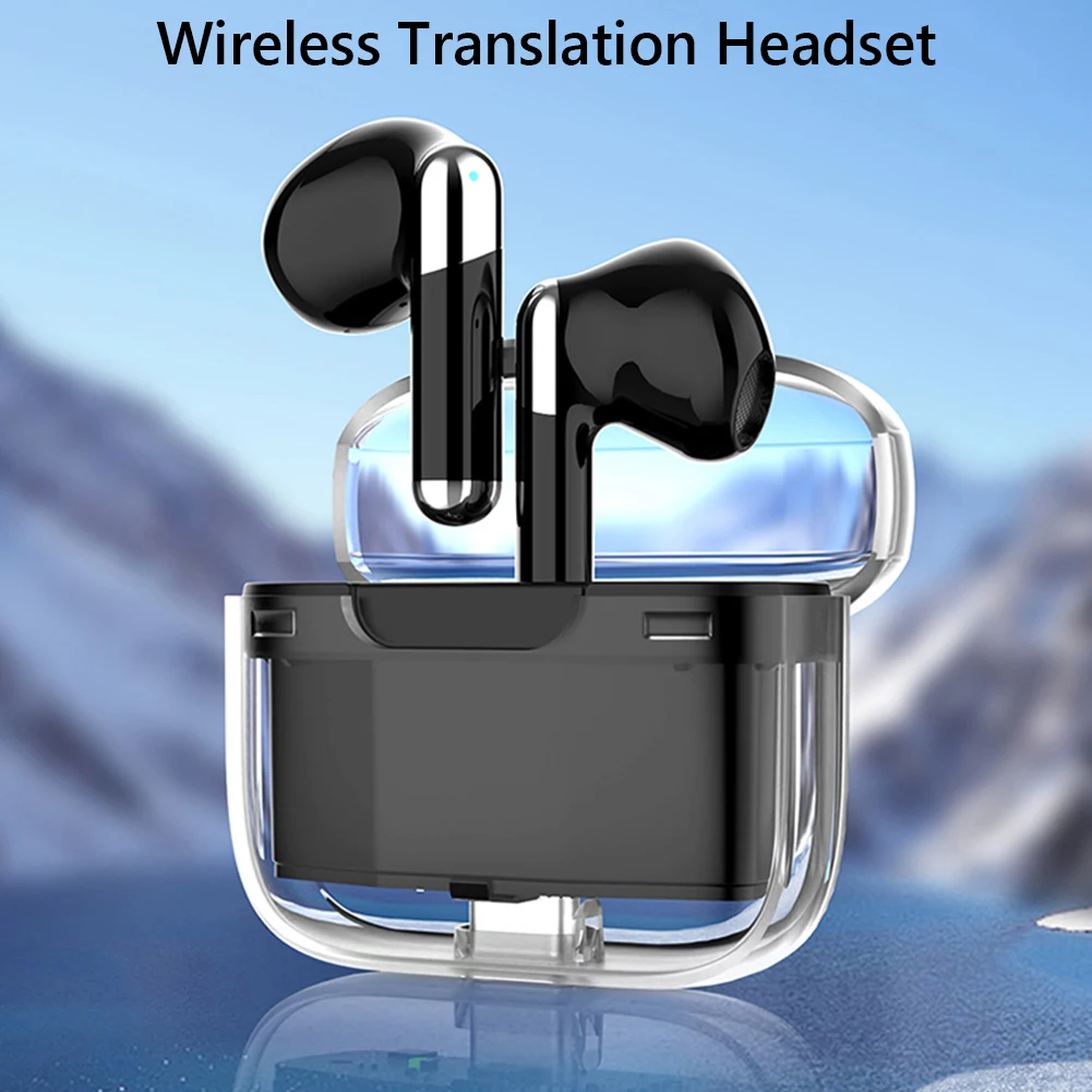 144 Languages Language Translation Earbuds Noise Cancelling Bluetooth-Compatible 5.3 Translator Earbuds with APP Real-time Translation Earphones in Transparent Case for Sport Travel Business Learning Feature: 1.Supports 144 Languages: Translation earbuds feature a transparent casing and can translate 144 languages. With Bluetooth-Compatible 5.3 quick connect, smart noise reduction, and a large battery capacity, ensuring extended battery life. 2.Three Translation Modes: Touch Mode (both wear one earbud, single/double tap for real-time language translation earphones, suitable for familiar people); Speaker Mode (one wears earbud, one uses phone, suited for newcomers); Free Talk Mode (each wears one earbud, smart voice translator allows hands-free communication). 3.User-Friendly: Translator earbuds are easy to operate; download the app via manual, set your translation language and target language, speak your words, and the translator device will do its magic. 4.Multi-Purpose: These translation earbuds meet everyday listening and call needs, offering smart, responsive music play. You can make and receive calls like standard Bluetooth-Compatible earphones. 5.Comfortable Wear: Ergonomically designed to ensure comfort even for prolonged use. Their stylish design makes them easy to carry, an ideal travel smart voice translator companion wherever you go. Specification: Origin: Mainland China BT version: 5.3 Battery input: DC 5V Earphone battery capacity: 30mAh Charging case battery capacity: 300mAh Usage time of single earphone: about 5-6 hours Sensitivity: 104±3dB Frequency response range: 20-20000Hz Supported protocols: HSP/HFP/A2DP/AVRCP APP: wooask Earphone size: about 33*19*18mm Charging case size: about 50*45*25mm/1.97x1.77x0.98inch Color box size: about 100*100*35mm Gross weight: 100g Note: Due to different monitor settings and lighting conditions, the actual color of the item may vary slightly from the pictures. Thanks for your understanding! Please allow a 1-2 cm difference in measurements due to manual measuring. 2 X Language Translation Earbuds 1 X Charging Case 1 X Charging Cable 1 X Instruction Manual