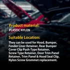 Specification: 10 Pcs Door Trim Panel Retainer White Nylon Top Head Diameter: 13mm Middle Head Diameter: 15.5mm Bottom Head Diameter: 18mm Stem Length: 14mm Overall Length: 20.5mm Stem Diameter: 9.5mm For Isuzu Replaces 8942264920 For Mazda Replaces 9927-40-825 For Toyota Replaces 67771-01010 For Toyota Replaces 67771-12010 For Auveco A14269 18 Pcs Nylon Screw Grommet Natural Nylon #10 Screw Size Width: 13mm Length: 13mm Snaps Into 8.5mm x 8.5mm Hole For Toyota Replaces 90189-06010 For Honda Replaces 75521-611-0000 For Mazda Replaces 9991-00-601 146PCS For Toyota Fender Door Hood Bumper Trim Clip Retainer Fastener Assortment Specification: 10 Pcs Door Trim Panel Retainer White Nylon Top Head Diameter: 13mm Middle Head Diameter: 15.5mm Bottom Head Diameter: 18mm Stem Length: 14mm Overall Length: 20.5mm Stem Diameter: 9.5mm For Isuzu Replaces 8942264920 For Mazda Replaces 9927-40-825 For Toyota Replaces 67771-01010 For Toyota Replaces 67771-12010 For Auveco A14269 18 Pcs Nylon Screw Grommet Natural Nylon #10 Screw Size Width: 13mm Length: 13mm Snaps Into 8.5mm x 8.5mm Hole For Toyota Replaces 90189-06010 For Honda Replaces 75521-611-0000 For Mazda Replaces 9991-00-601 Fits For Nissan Replaces 96706-P0105 For Auveco A14274 12 Pcs Screw Type Retainer Material: Black Nylon Head Diameter: 15mm Stem Length: 12mm Fits Into 7mm Hole For Auveco A14260 For GM Replace 20426301 For Mazda Replace 9926-50-625 For Toyota Replace 90467-06017 For Toyota Replace 90467-06017-20 For Toyota Replace 90467-06017-41 18 Pcs Headlight And Grill Nut #10 Screw Size 12mm Wide, 12mm Long Fits into 8mm x 9mm Hole For Toyota Replaces 90189-05013 For Mitsubishi Replaces MS-480002 For Auveco A13932 10 Pcs Fender Liner Retainer Push Type Clip Black Nylon Head Diameter: 20mm (13/16") Stem Length: 8mm (5/16") Fits Hole Size: 7mm (9/32") Fits For Toyota Replaces 90467-07166 For Auveco A18888 12 Pcs #10 Screw Grommet Natural Nylon #10 Screw Size Head Diameter: 18 mm (23/32 inches) Stem Length: 17 mm (21/32 inches) Fits Into 8.5 mm Square Hole Fits For Nissan Replaces 01281-00023 Fits For Toyota Replaces 90189-06001 Fits For Mitsubishi Replaces MB-098145 Fits For Alfa / For Fiat / For Lancia Replaces 14203780 For Auveco A14275 10 Pcs Rear Bumper Cover Clip Push-Type Retainer Black Nylon Head Diameter 18mm (0.71 inch) Stem Length 28mm (1.10 inch) Fits into 9mm Hole (0.35 inch) Fits For Tercel 1988-On Fits For Camry 1988-On Fits For Celica 1996-On Fits For 4 Runner 2003-On Fits For Hi-lux 2003-On Fits For Toyota Replaces 52161-16010 Fits For Toyota Replaces 52161-02020 For Auveco A18873 12 Pcs Screw Grommet With Sealer #6 Screw Size Natural Nylon Head Diameter: 14mm Stem Length: 10mm Fits Into 7mm x 7mm Hole For Honda Replaces 90662-693-0030 For Honda Replaces 90662-693-003 For Toyota Replaces 9018-04066 For Auveco A14281 18 Pcs Trim Panel & Hood Seal Clip Black Nylon Head Diameter: 13mm Stem Length: 11mm Fits Into 5mm Hole For Toyota Replace 90467-08004 For Toyota Replace 90467-08011 For GM Replace 94842841, 94849113 For Geo Prizm 1985-On For Nova 1985-On For Auveco A18297 8 Pcs Front & Rear Wheel Fender Liner Screw Grommet Black Nylon #12 Screw Size Head Diameter: 16mm Stem Length: 19mm Fits Into 9mm x 9mm Hole For Toyota Replaces 90189-06028 For Tacoma, T100 & 4 Runner 1992-On For GM Replaces 94854203 For Chevrolet Nova & Prizm 1985-On For Pontiac Vibe 1985-On For Auveco A19194 8 Pcs Hood Insulation Retaining Clip Hood Pad Insulation, Package Tray Panel, Luggage Compartment Mat Black Nylon Head Diameter: 30mm Stem Length: 17mm Fits 7mm Hole Panel Thickness: 6mm Fits For MR2 1989-On For GM Nova 1985-On For Toyota Replaces 90467-09008 For Auveco A14738 10 Pcs Screw Grommet Black Nylon 1/4" (#14) or M6.3-1.81 Screw Size Head Diameter: 20mm Stem Length: 17mm Fits Into 8mm x 8mm Hole For Toyota Replaces 90189-06013 For Toyota Replaces 96706-W100 For Auveco A14267 Features: *Superior material Adopt to excellent metal and plastic materials to prevent it from corrosion and cracking. *Easy installation Simple installation with direct replacement, other modification is not required. *Please Note: Communication is the best way to solve the problem. If you have any problems after purchasing, please contact us via eBay Message, before return. *Usage They can be used for Hood, Bumper, Fender Liner Retainer, Rear Bumper Cover Clip Push-Type Retainer, Screw Type Retainer, Door Trim Panel Retainer, Trim Panel & Hood Seal Clip, Nylon Screw Grommet replacement. It fits for Auto Car SUV Off-Road Pickup Truck. Package Included: 10 Pcs Door Trim Panel Retainer 18 Pcs Nylon Screw Grommet 12 Pcs Screw Type Retainer 18 Pcs Headlight And Grill Nut 10 Pcs Hood, Bumper, Fender 12 Pcs #10 Screw Grommet 10 Pcs Rear Bumper Cover Clip 12 Pcs Screw Grommet With Sealer 18 Pcs Trim Panel & Hood Seal Clip 8 Pcs Front & Rear Wheel 8 Pcs Hood Insulation Retaining Clip 10 Pcs Screw Grommet Item Specifics Brand Unbranded Type Clips Color Black,White Placement on Vehicle Left, Right, Front, Rear, Upper, Lower Features Easy Installation Material Plastic Universal Fitment No Manufacturer Warranty 1 Year Fitment Type Direct Replacement Package Include 146pcs Clips Application 1 Screw Fender Body Door Trim Panel Hood Application 2 Under Engine Splash Guard Rivet Fastener Clips Application 3 Universal For Auto Car SUV Off-Road Pickup Truck Application 4 146Pcs Car Push Pin Rivet Trim Clip Assortment Kit Manufacturer Warranty 1 Year Fitment Type Direct Replacement Package Include 146pcs Clips Application 1 Screw Fender Body Door Trim Panel Hood Application 2 Under Engine Splash Guard Rivet Fastener Clips Application 3 Universal For Auto Car SUV Off-Road Pickup Truck Application 4 146Pcs Car Push Pin Rivet Trim Clip Assortment Kit FAQ ♥ If you have a decoding problem or any other problems, please contact us first, we will help you with it. We will reply you within 24 hours in working days. I'm a new seller, thanks a lot for your trust and convince! I will serve you with a
