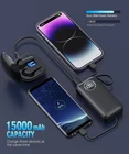 external-cell-phone-battery-packs Portable charger built-in Type-C cable and USB port support PD30W fast charging. Portable charger power bank built-in IOS cable supports 20W fast charging. Power bank with built-in IOS cable and Type-C cable. With very compact shape, portable charger is convenient to carry go out.(Type-C cable is not for iPhone 15 Series) Portable charger power bank allows charge 3 devices at the same time, battery pack is suitable for most devices on the market, such as iPad and iPhone, Android Phones and so on. (Attention: Type-C port only support input.) Portable battery charger adopts high-density A-grade lithium polymer battery cells, with a large capacity of 15000mAh in a compact size. Portable phone charger can let you get rid of the anxiety about the remaining power of your phone at all times and places. Power bank equipped with LED percentage display screen to show the remaining power accurately in real time. Battery bank makes it easier for customers to grasp the power level of the product.